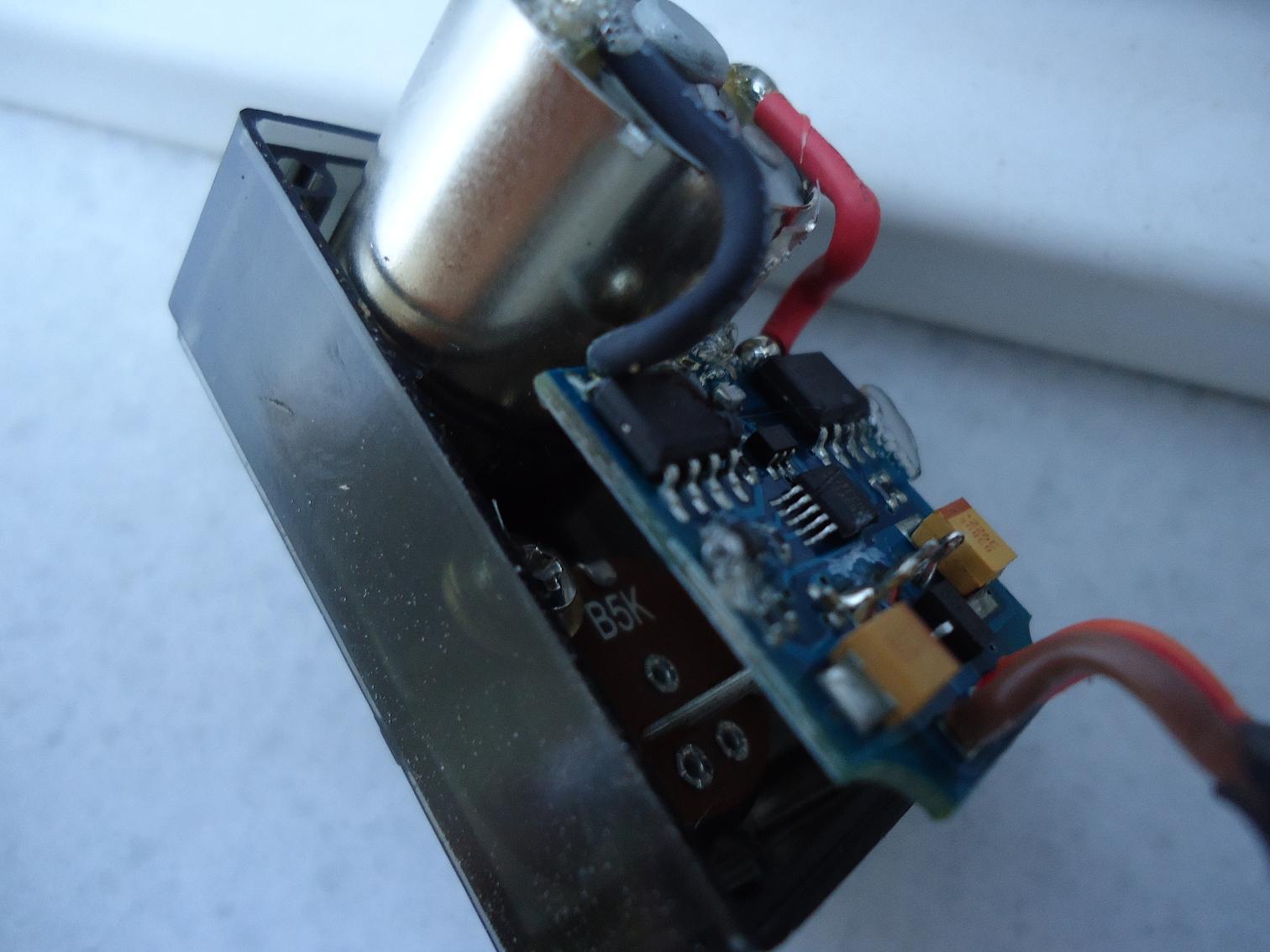 hola nauti,gracias por el enlace,lo usaré como plan "B" si es que el "A" me falla, el plan "A" es similar al B pero con resistencias fijas (de 2,5 K) para que quede todo cerrado dentro del servo en previsión de problemas de humedad.Acontinuación fotos del servo ya desmontado y listo para las modificaciones