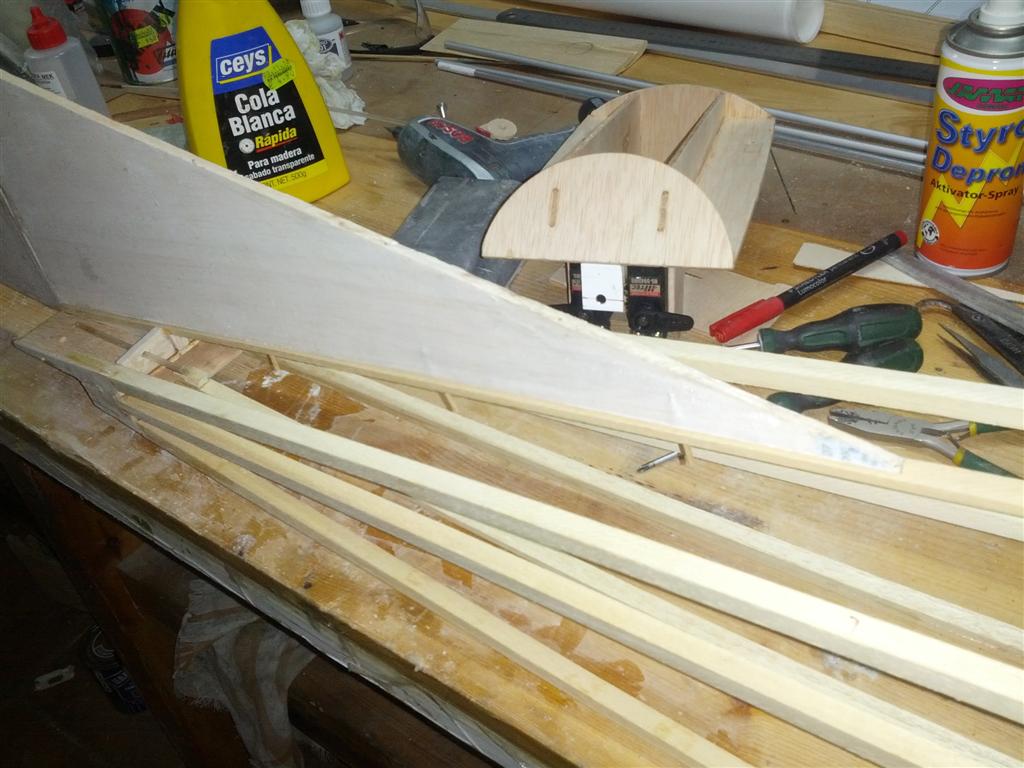 Una pequeña observación te recomiendo q el estabilizador y dirección las hagas en balsa de 4 mm. Yo les pongo una tela impregnada con cola blanca muy poco diluida q le da una rigidez buenísima.
