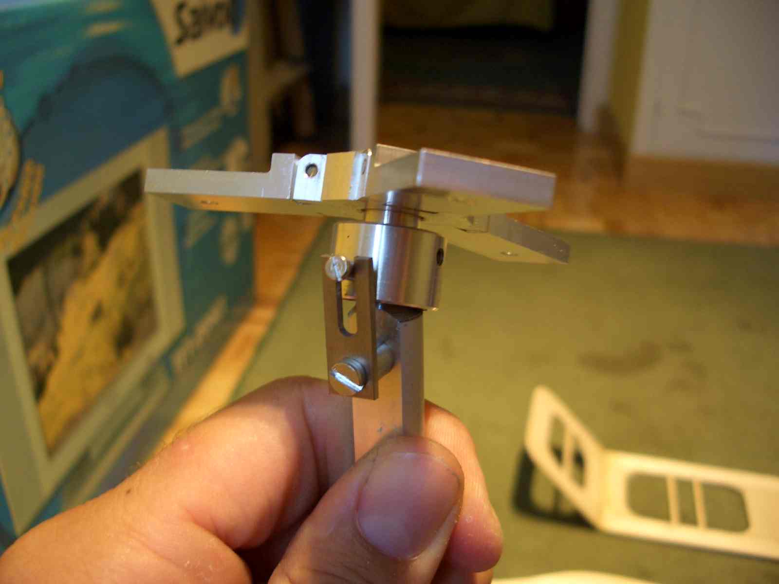 Ratifico lo dicho,te esta quedando chulisimo.Por cierto,yo tengo servos de 3.5kg en el rotor y me van bien.Supongo que en esto tendra algo que ver el efecto palanca,a mas distancia del eje del rotor,menos fuerza necesaria.El mando del mio esta situado a unos 8 centimetros del eje.