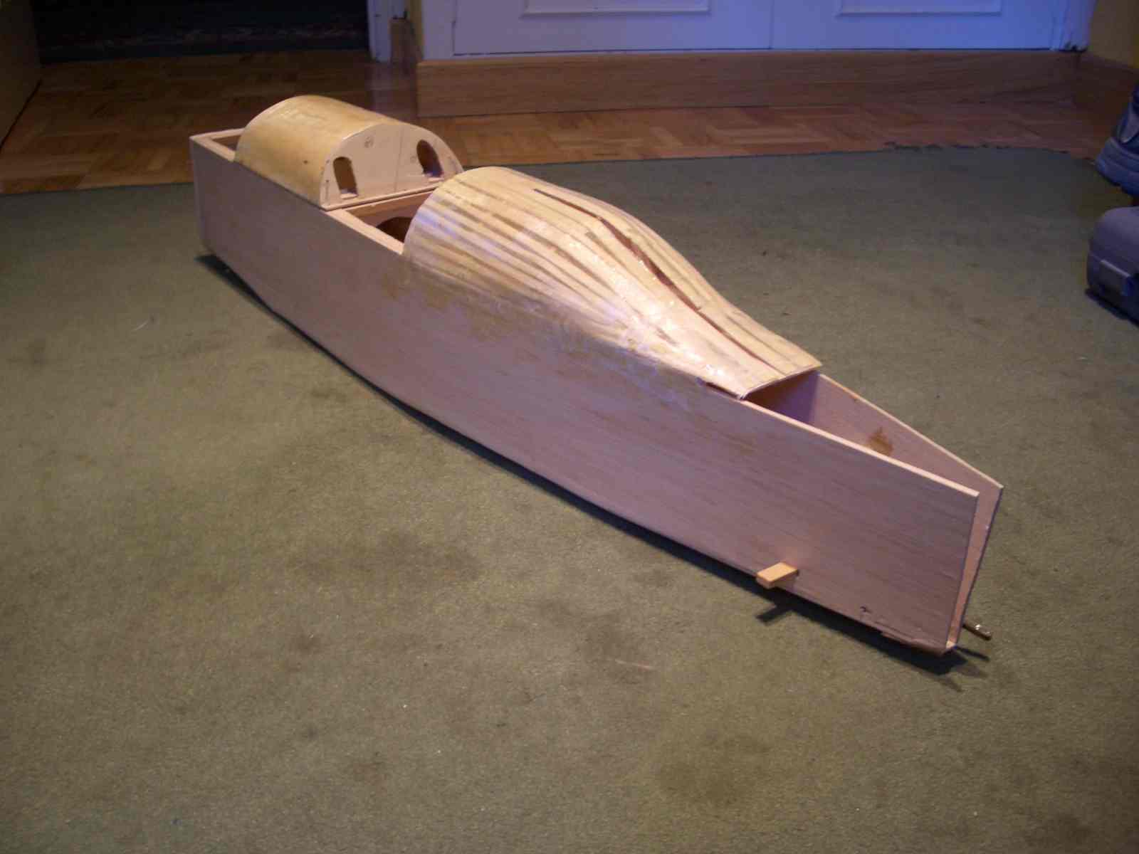 Se trata de un cajón de balsa rectangular. Tiene únicamente tres cuadernas de contrachapado de 3 mm y una cuaderna parallamas de contrachapado de 10 mm de ocumen
