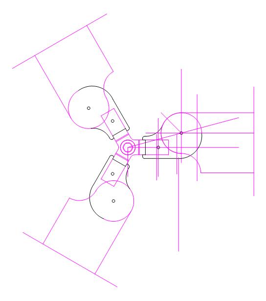 Así que me puse con el AutoCAD a dibujar. Primero dibujé el rótor comercial de Vázquez Ramirez y a continuación dibujé las dos posibilidades. La condición que debía de cumplir es que el agujero de sujección de la pala debía estar en un radio de 55 - 60 mm. Los resultados os los muestros en las fotos