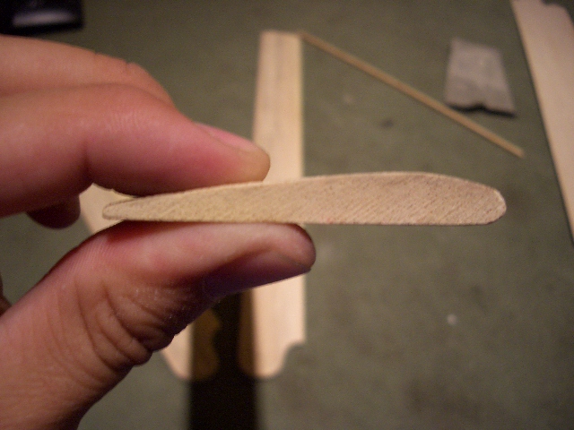 Según el artículo, para conseguir este peso se deberían hacer las palas con madera de balsa media-dura y crear el perfil a base de lija.