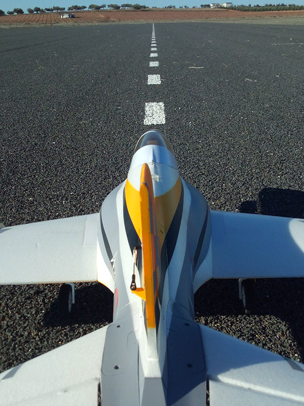Tengo que decir que detras de esa apariencia de jet agresivo se encuentra toda una madre, es un avión con un planeo casi infinito, noble y va como en railes. Es un avión que no quiere dejar de volar ya que hay que cortarle mucho motor si quieres aterrizarle, si no , no baja.