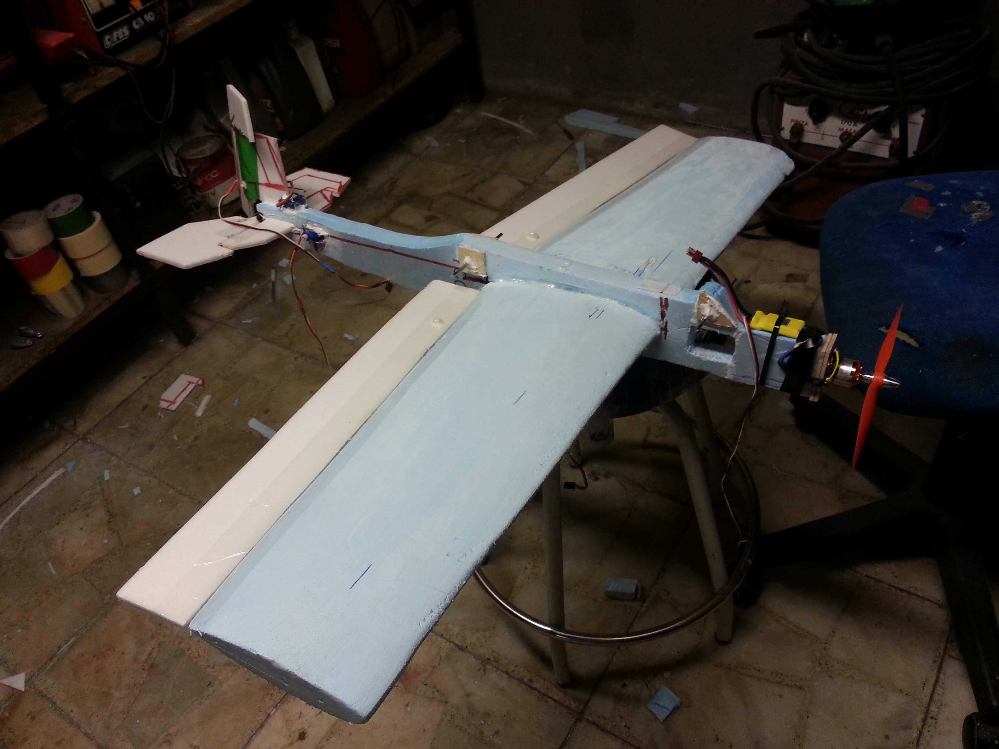 Las estadísticas del avión son: motor XXD2212A 1400kv con una hélice 8x6,alas perfil clark Y 24.5cm de cuerda y 120cm de longitud alar