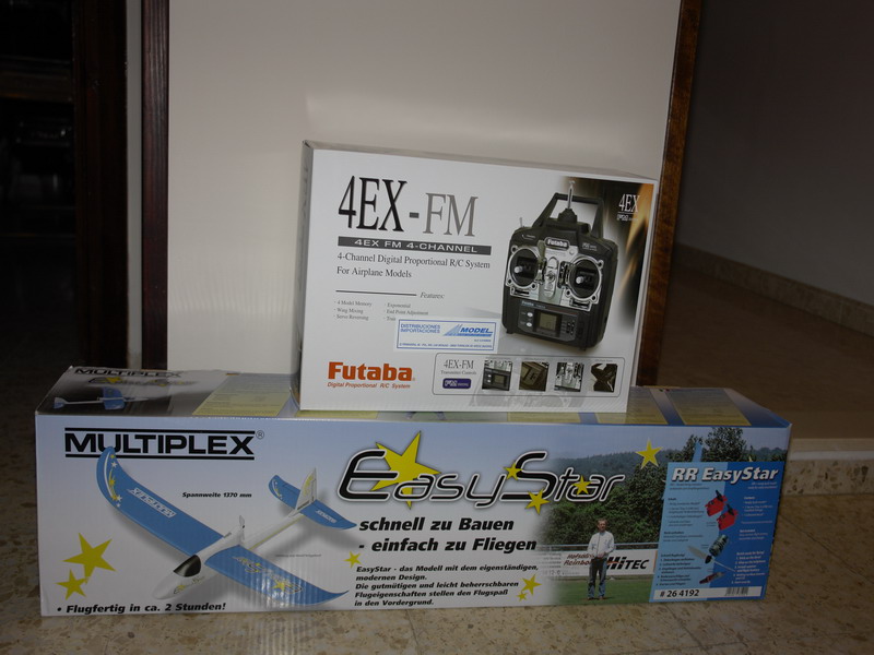 Como veis en la primera foto es el Easy Star en version RR (mas facil creo yo para un inexperto) y la Futaba nueva de 4 canales(tiene muy buena pinta); ademas estoy esperando el cable para el simu que creo que llkegara mañana.