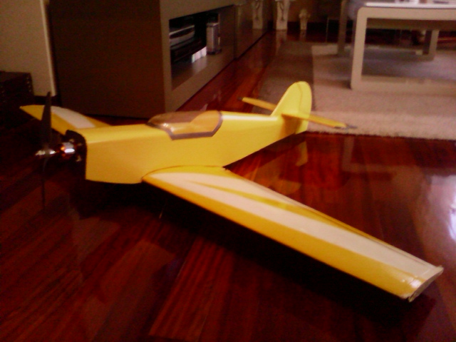 El avión tiene 1200 mm de envergadura. La idea es volarlo con baterías 3s 2200 de las que dispongo, aunque posiblemente eche de menos algo de autonomía. El motor, un Turnigy 3536 de 1450 KV. Busco un vuelo sport, con capacidad para algún looping, tonel... Sin muchas pretensiones. Lo pongo en este apartado y no en iniciación más que por sus prestaciones por que no creo que sea interesante a quien se inicia en estos momentos.