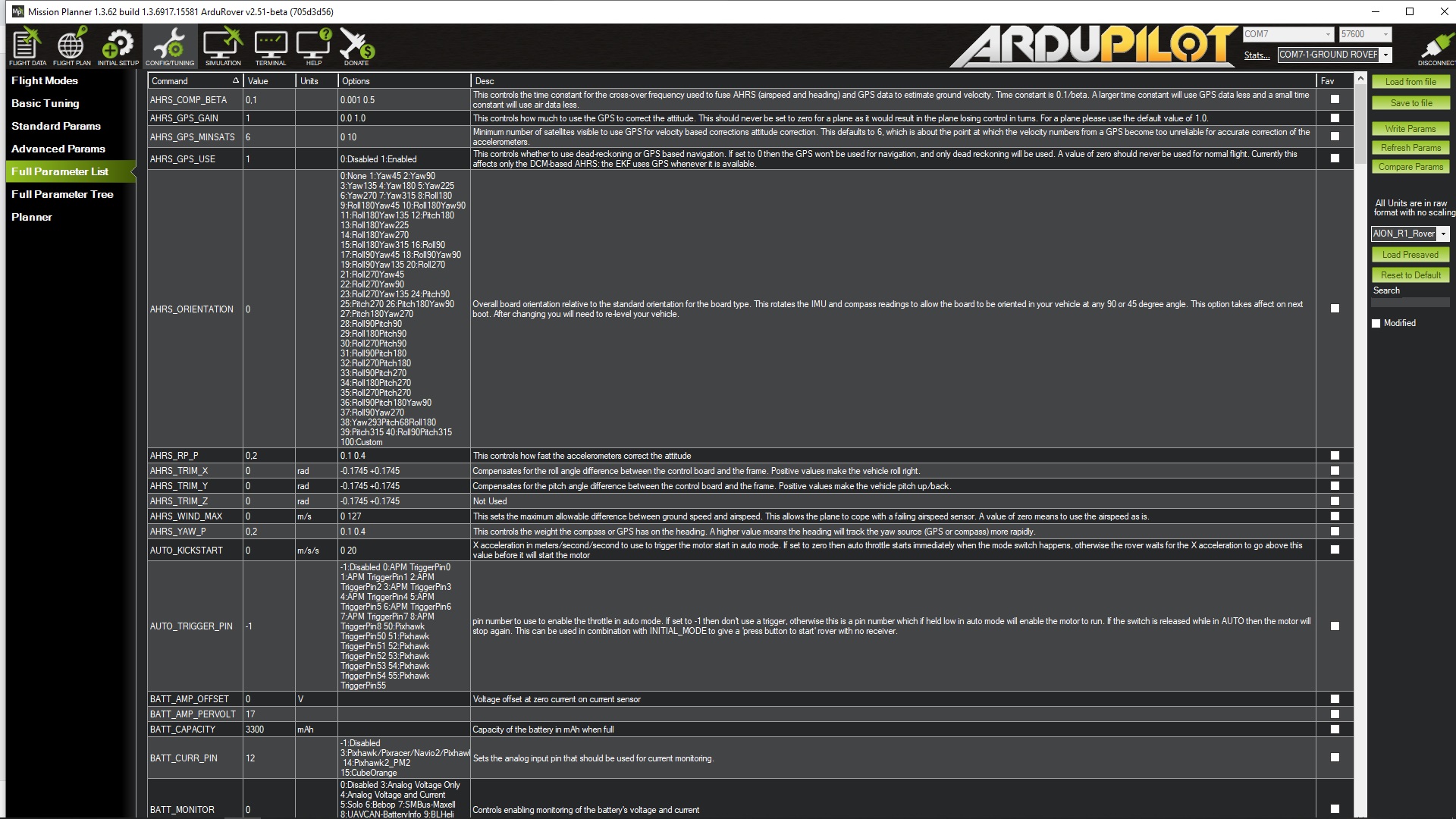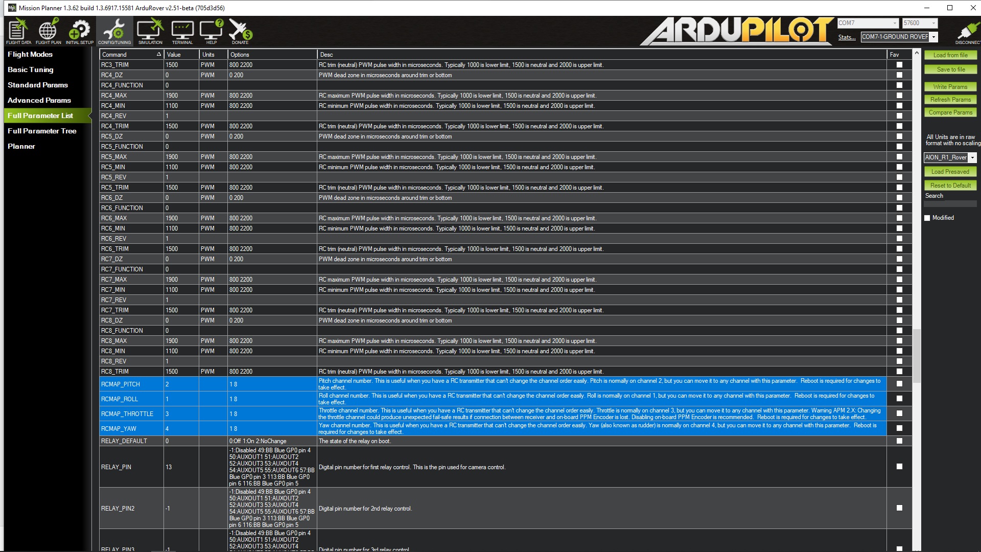 1. Por un lado, como puedo comprobar el firmware que se me instaló en la APM? De momento se que tengo comunicación con la APM a través de Mission Planner conectado por telemetría en COM7-1-GROUND-ROVER A 57600 BAUDS.