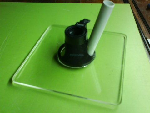 Ademas de la campana de dremel que tienes tu, te convendría adaptar una base de metacrilato de 6-8 mm para hacer una wena base y fresar perpendicular a la plantilla y por lo tanto al depron.