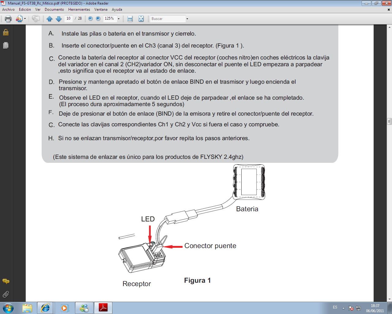 Pues si no me equivoco, pones el conector que viene con un cable que hace un puente en el canal 3, alimentas el receptor y te parpadea el led, y apretando el boton del modulo de la emisora y sin soltarlos la enciendes y el led se queda fijo y ya esta.