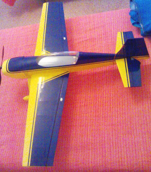 Esta semana le compré a un amigo un extra 300, según él, de segunda mano, por 40 euros sin electrónica, con un motor de 850 KV con el eje doblado,de pequeña envergadura. Le he puesto un motor de 1050 KV, variador 18 amp, hélice 10x4'7, y batería 1.300 milis 3 S 25 C. y cuatro servos de 9 g. La electrónica esta comprobada con otro modelo de similar peso , alrededor de 600 G, y creo que irá bien.