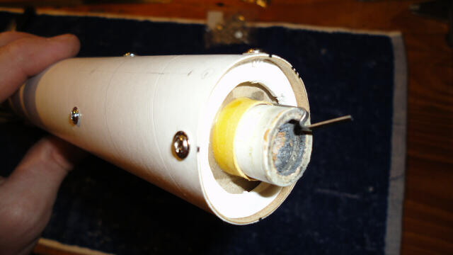 Totalmente listo para volar el paracaidas iria mas adelantado en el tubo, pero llevaría el peso del algodón mas abajo, asi que creo que tendré que poner peso en la ojiva para que con el D7 tenga una distancia de mas de 40mm entre el CP y el CG, pero que distancia sería la recomendable para que tenga buena estabilidad?