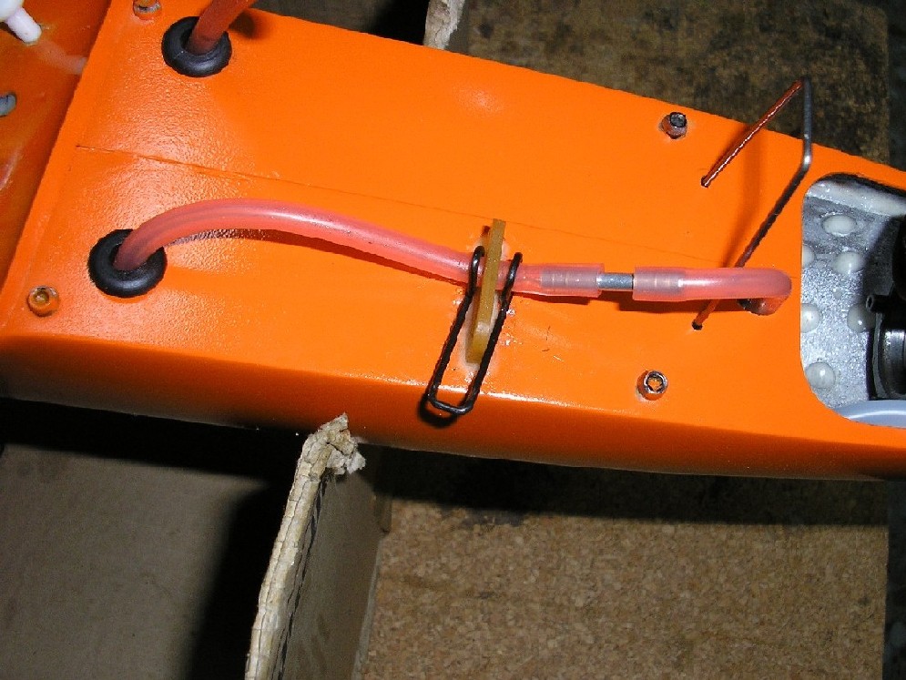 Pues eso que necesito ayuda para solucionar un problema en el avión (Atomic). Lo que me ocurre es que no se montar el mecanismo de estrangulación de la silicona de alimentación al motor, lo he intentado de varias formas y ninguna me convence. Lo que pasa es que quiero dejar de utilizar las pinzas, pues son un poco engorrosas, y el montaje sin los tubos por fuera es más limpio.