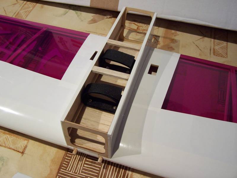 Viene con bisagras de fibra, la parallamas ya viene con la incidencia dada, cabina atornillada y los agujeros de los servos ya abiertos. Las baterías se alojan en la parte inferior del ala (en el redondo del fuselaje) que viene abierta para mejor refrigeración. También viene con dos tiras de velero, atornilladas al ala, para poder sujetar las baterías.