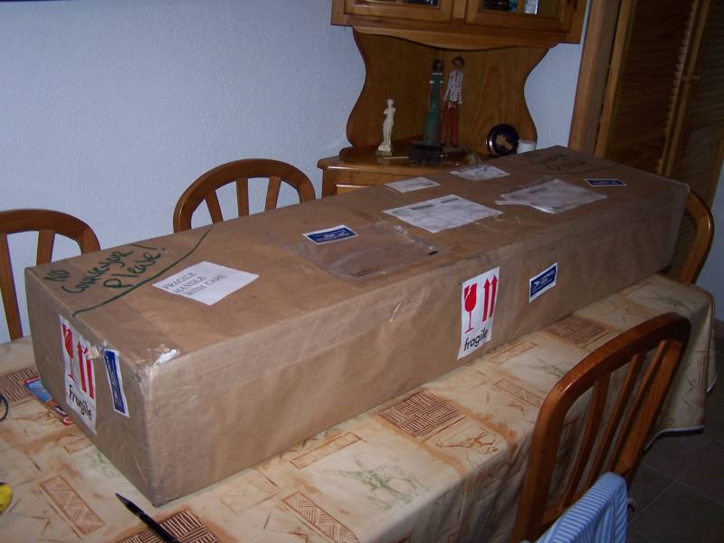El avión ha llegado en su caja, embalado en papel reforzado con cinta de fibra en las esquinas y lleno de pegatinas de frágil por todos lados.