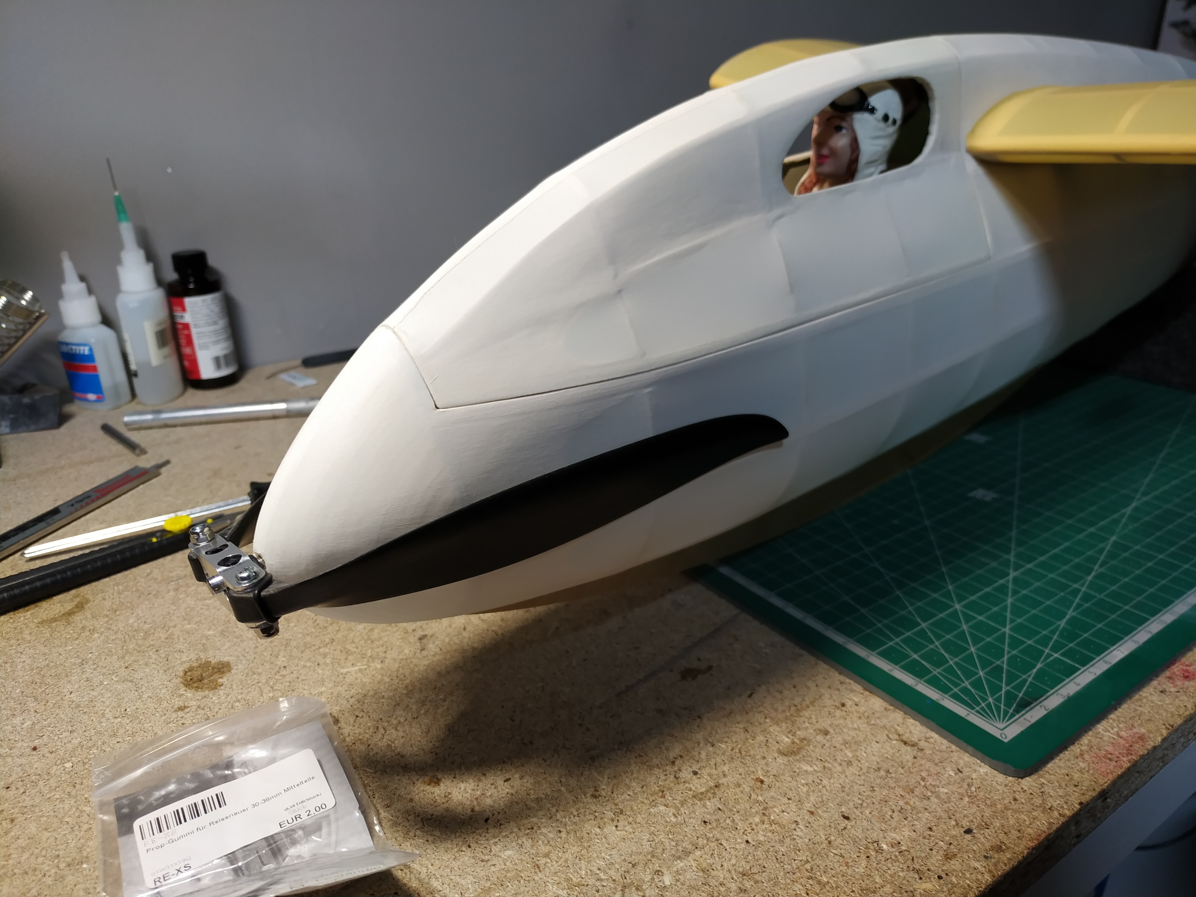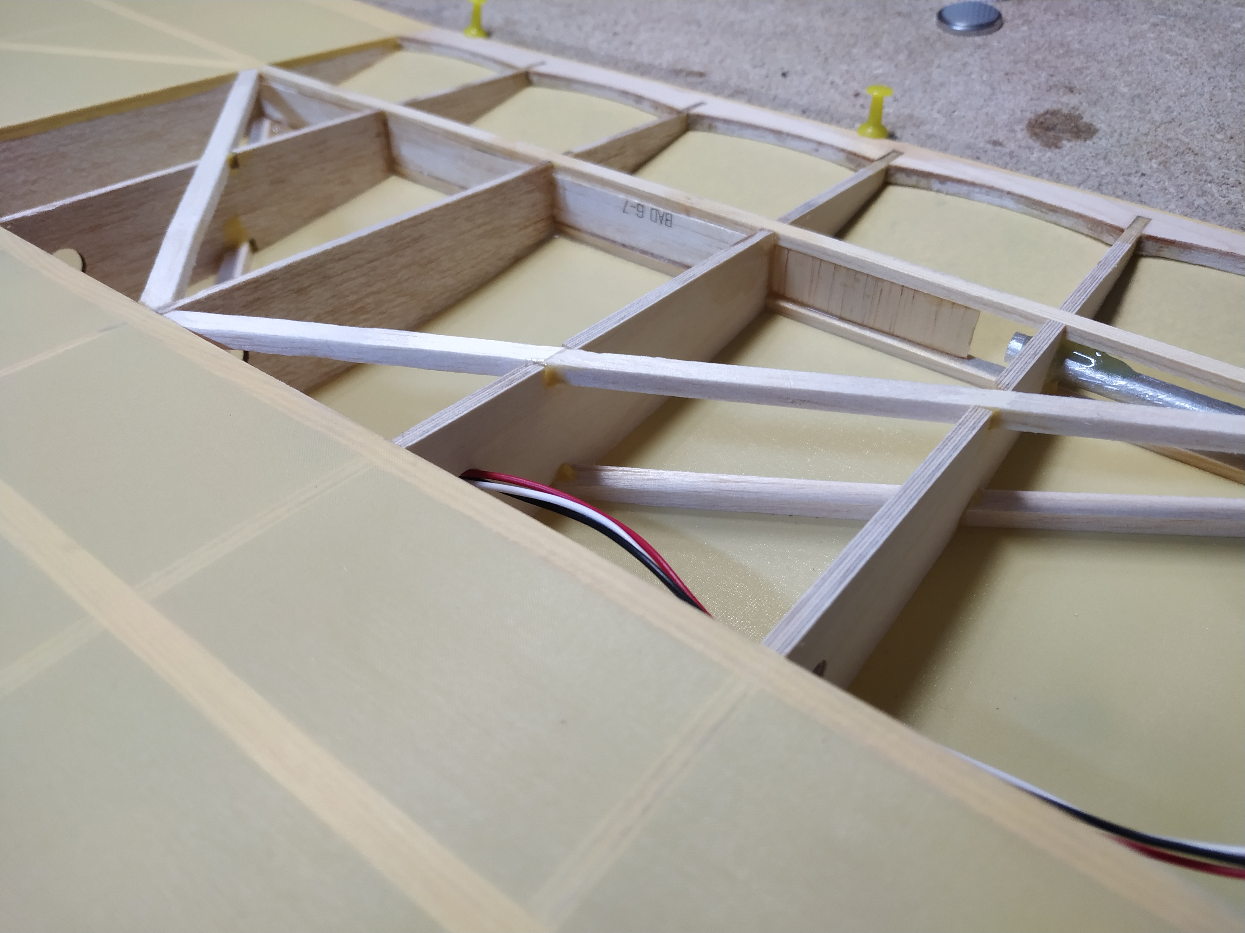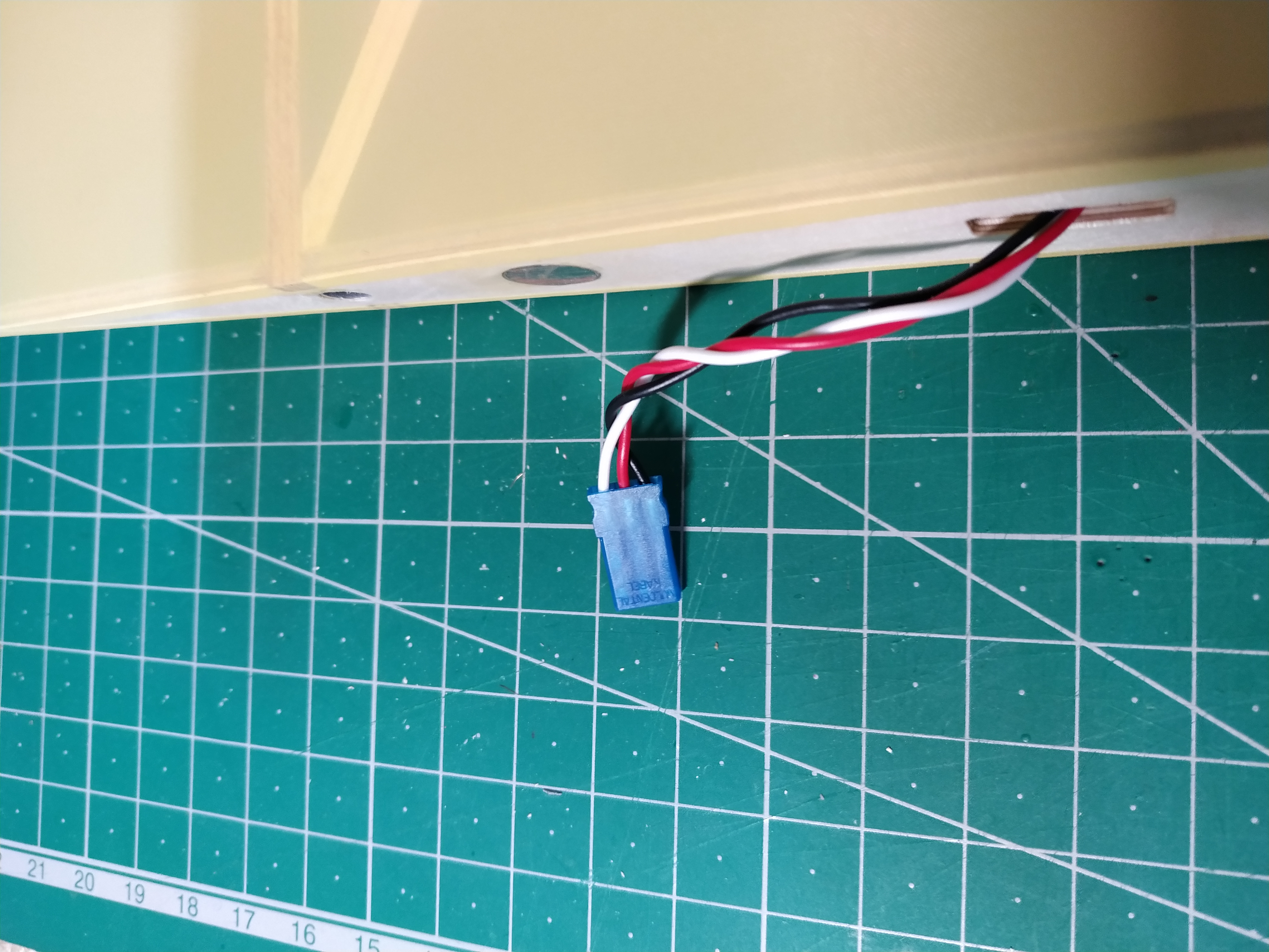 Pues nada, al aire otra vez, no se, no lo veo ahora, le doy trim pabajo, tampoco me gusta, pues ahora, parriba, no, tampoco, empiezo a pensar que la he cagado tocando el trim, vuelo un rato, y lo aterrizo, y voy a por el meditando porqué no me gusta tanto como el primer vuelo, lo cojo, preparado para un tercer intento.......¿que leches sobresale y empuja el recubrimiento?, abro la cabina, vale, ahora lo entiendo todo, el plomo del morro, se ha soltado y desplazado hasta la mitad de la batería, así no volaba tan bien, jejeje, pues nada, ya, para el próximo día, pero el avión, ha pasado la prueba, bastante contento.