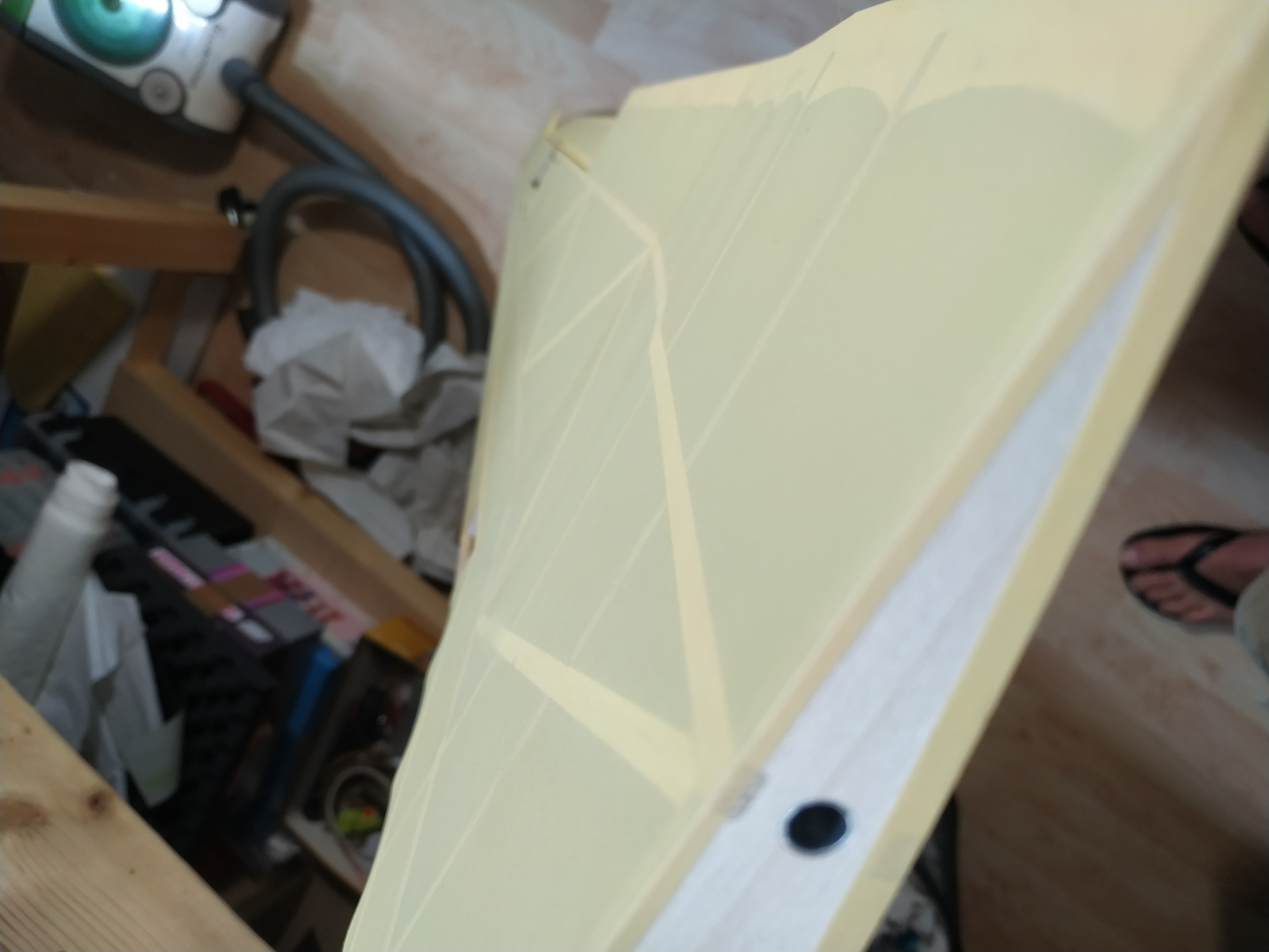 Nota negativa, esta vez el Solartex, no me está dando buen resultado, se destensa, se despega, en fin, un poco decepcionado, a ver en alguna sesión mas de vuelo, pero pinta mal.....