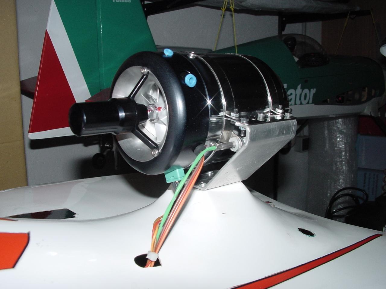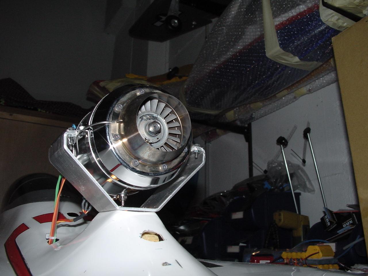 La parte mas baja de la turbina va a una altura de 1,5 cm sobre el soporte del avion, yo creo que esta bien no?