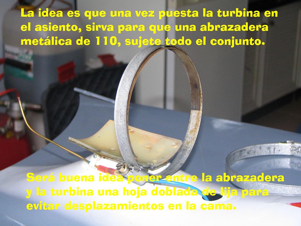 1.- Tendria que recortar las lenguetas de soporte de la turbina porque al ir por debajo tocan en su extremo con el pliegue de la chapa (esto es resoluble).