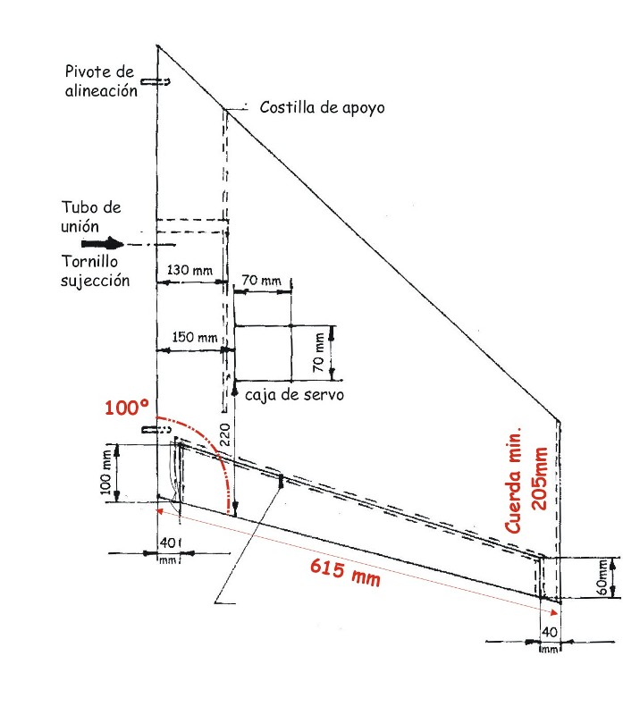 Añado información de construcción de las alas. En este caso las fabricaba en porex enchapadas en balsa con abisagrado en pilplay, y en el borde de ataque una mecha de carbono o kevlar bien empapada en micro balones y epoxi. El borde de fuga llevaba unas telas de 125gr. en su intradós y extrados, de unos 50mm de ancho, lo que le daba una robustez tremenda. También llevaban unas medialunas de fibra o kevlar/carbono en la zona de la costilla flotante..