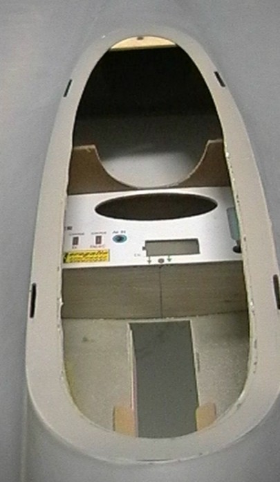 Fuselaje en fibra de vidrio, con refuerzos de carbono y kevlar. Cuadernas de espuma de poliuretano enchapadas en fibra de 100gr, reforzadas en zonas estratégicas. Costilla y sujeción del tren en contrachapado de 5mm. y cuaderna de sujeción del tren delantero en contrachapado de 10mm.