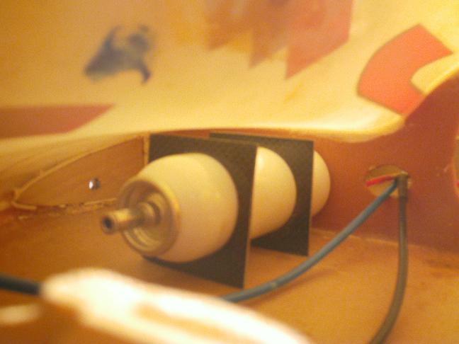 El Kangaroo que tengo es de segunda mano (era de Eladio) y estoy haciendo reformas, por ejemplo el deposito que me viene era para una turbina Wren 54, era de 1,25 litros, y he tenido que buscar un deposito mayor que cupiera (botella de 2 l de coca-cola de marca blanca) ya que la mia es una merlin-90, esto me obligará a aumentar el diameto de paso en la costilla de refuerzo para el depósito conseguido.