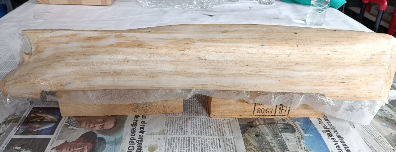 Me estoy planteando, que como quiero hacer dos barcos, ahora tengo que empezar todo el proceso de nuevo... :roll: , creo que me voy a decidir a hacer un molde en fibra de vidrio con poliester para hacer los dos barcos en fibra en lugar de madera... :cry: