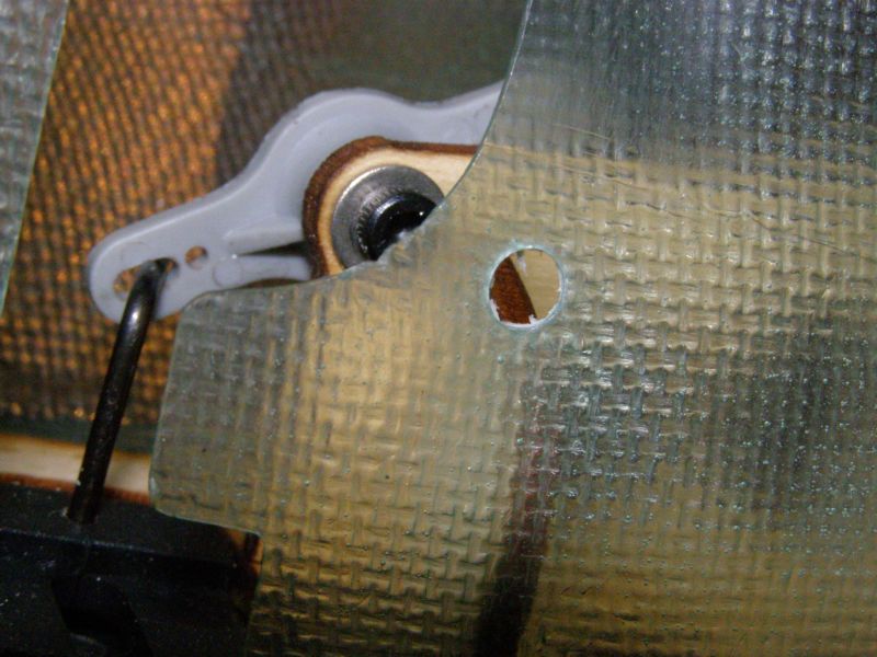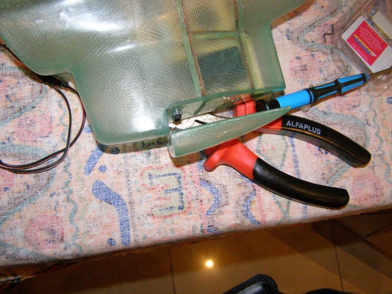 tiene tres trocitos de tubo de carbono, dos hacen de guia para que entre y salga centrada, y por el otro pasa la varilla de mando.SI sale bien se encendera una luz empotrada en el frente del aletin, que una vez cerrado