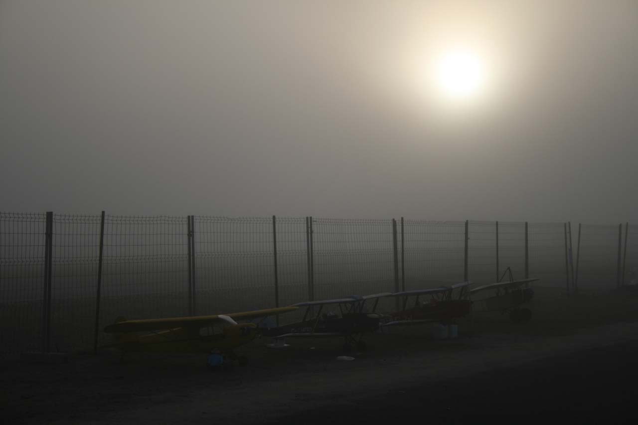 Os pongo unas fotillos de lo que fué a mi entender uno de los momentos mas "magicos" del evento, cuando la mañana del domingo amaneció cerrada en niebla y andaban los aviones entre las brumas.