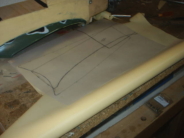 Bueno, la presente foto es uno de mis modestos trucos. Utilizo el papel vegetal tanto como la segueta. En esta ocasión para marcar el solartex. Lo posiciono en la parte a entelar y marco con un lapiz blando. Le doy la vuelta y marco sobre el solartex y queda imprimado en el mismo por el grafito del lapiz. También lo utilizo para la construcción y asimismo para, como veremos más adelante, los dibujos y matriculas de este "vión".