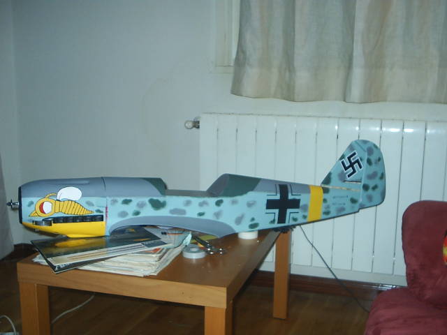 Te pongo unas fotos de lo que he hecho yo con el mio de Kyosho, que se parece al avion real como un higo a una castaña, pero con un poco de pintura aqui y alla, y mira tu, que parece que da el pego y to :lol: