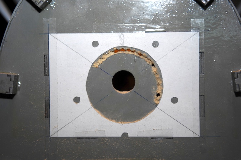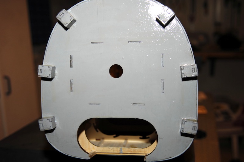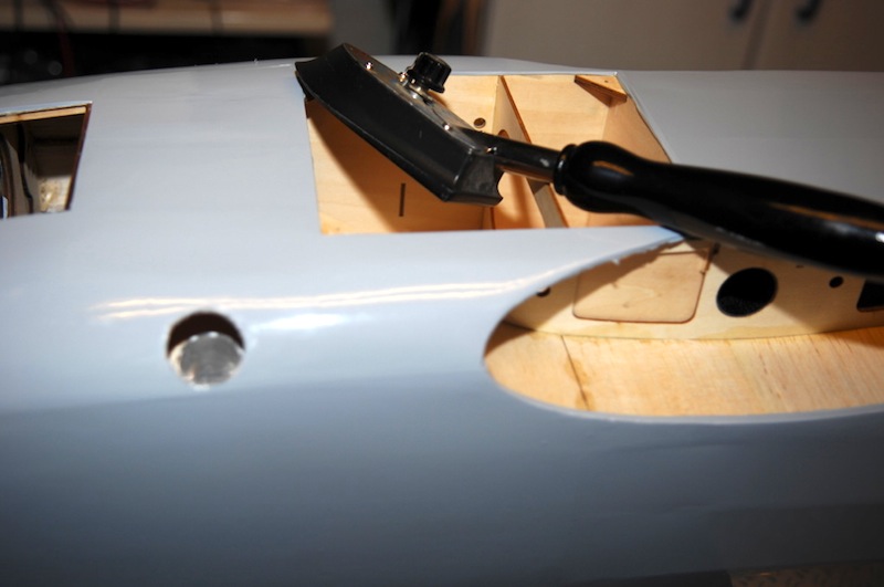 Con los 4 kilos del motor tengo que reforzar la parallamas, pongo contrachapado multicapa de 5 mm, por el interior con fibra de vidrio y por el exterior.