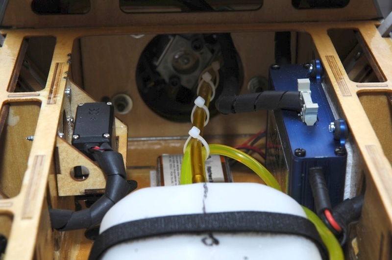 - Barniz con epoxy laminar desde la parallamas al servo de dirección, aprox.