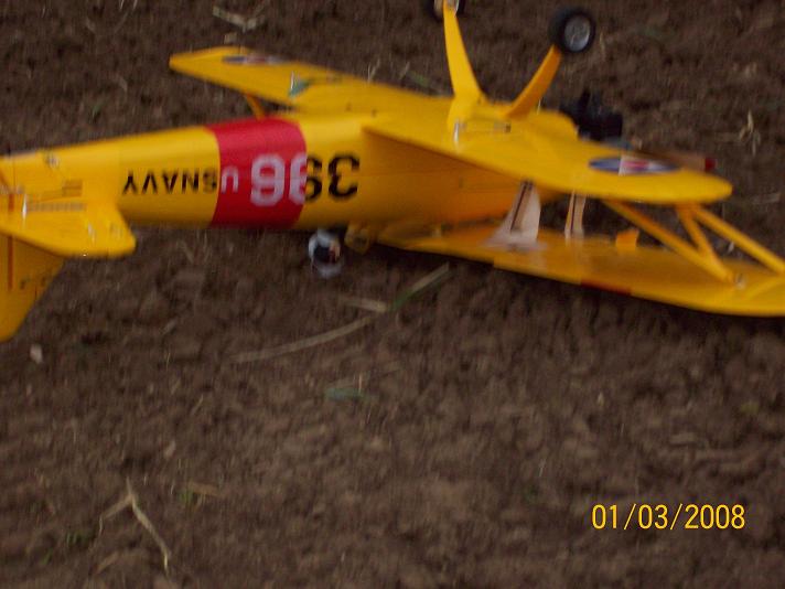 Hola TOÑO-LEON, la verdad es que este biplano que es un pt sterman de casi 2mtros, fue un fallo del pilota al aterrizar, pero ya esta areglado y ya a volado y su vuelo es muy bonito aver si sige asin y no acaba a la chiminea, un saludo.