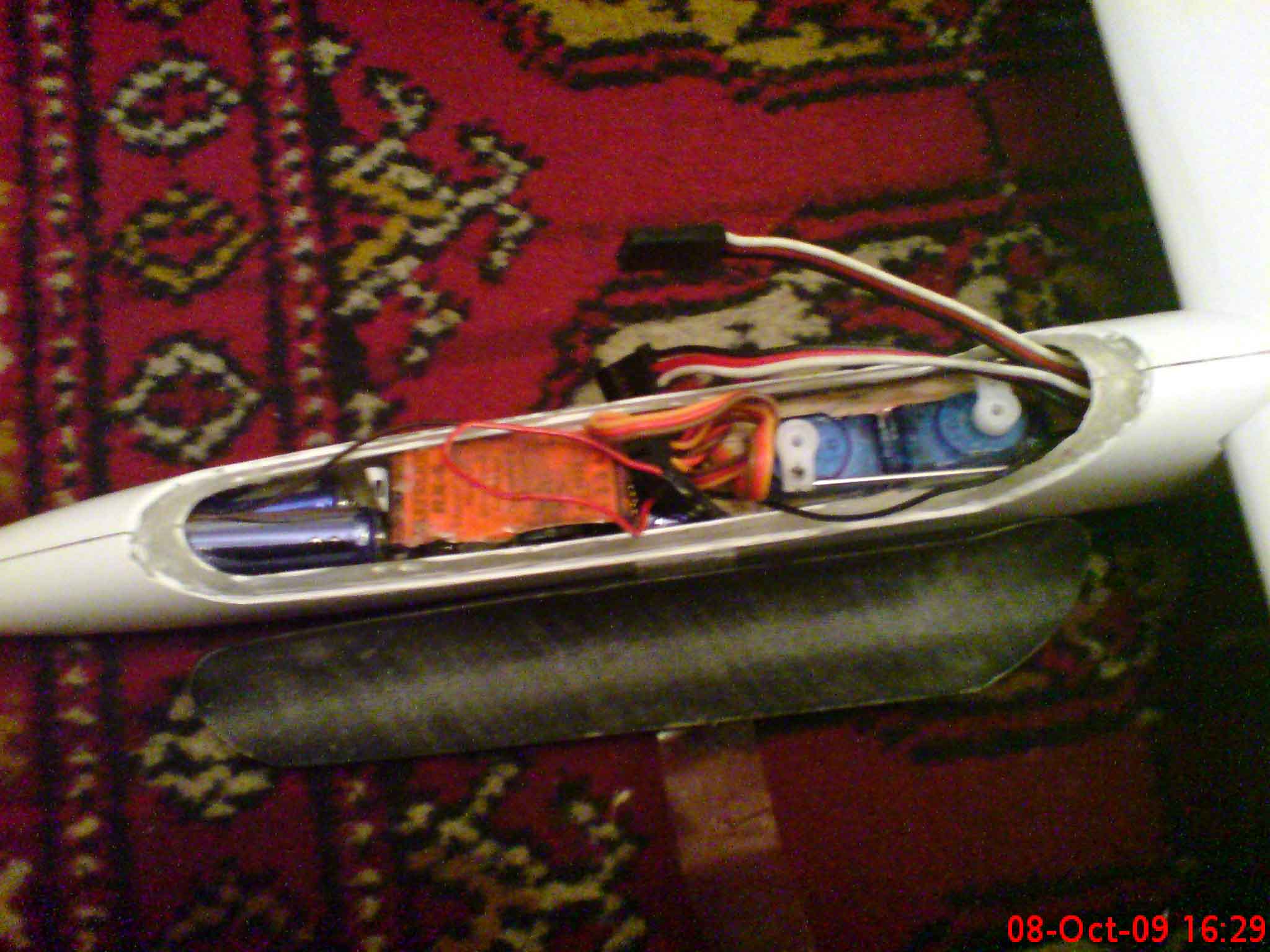 le he quitado casi todo el diedro al ala y puesto la cola desmontable y cola funcional (4 servos en total)