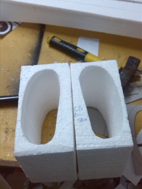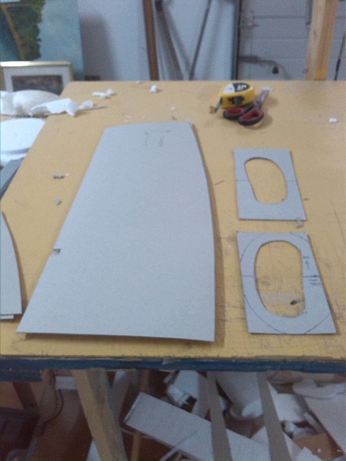 ya tengo cortados los bloques de corcho blanco y he realizado las plantillas para los cortes y el ahuegado.