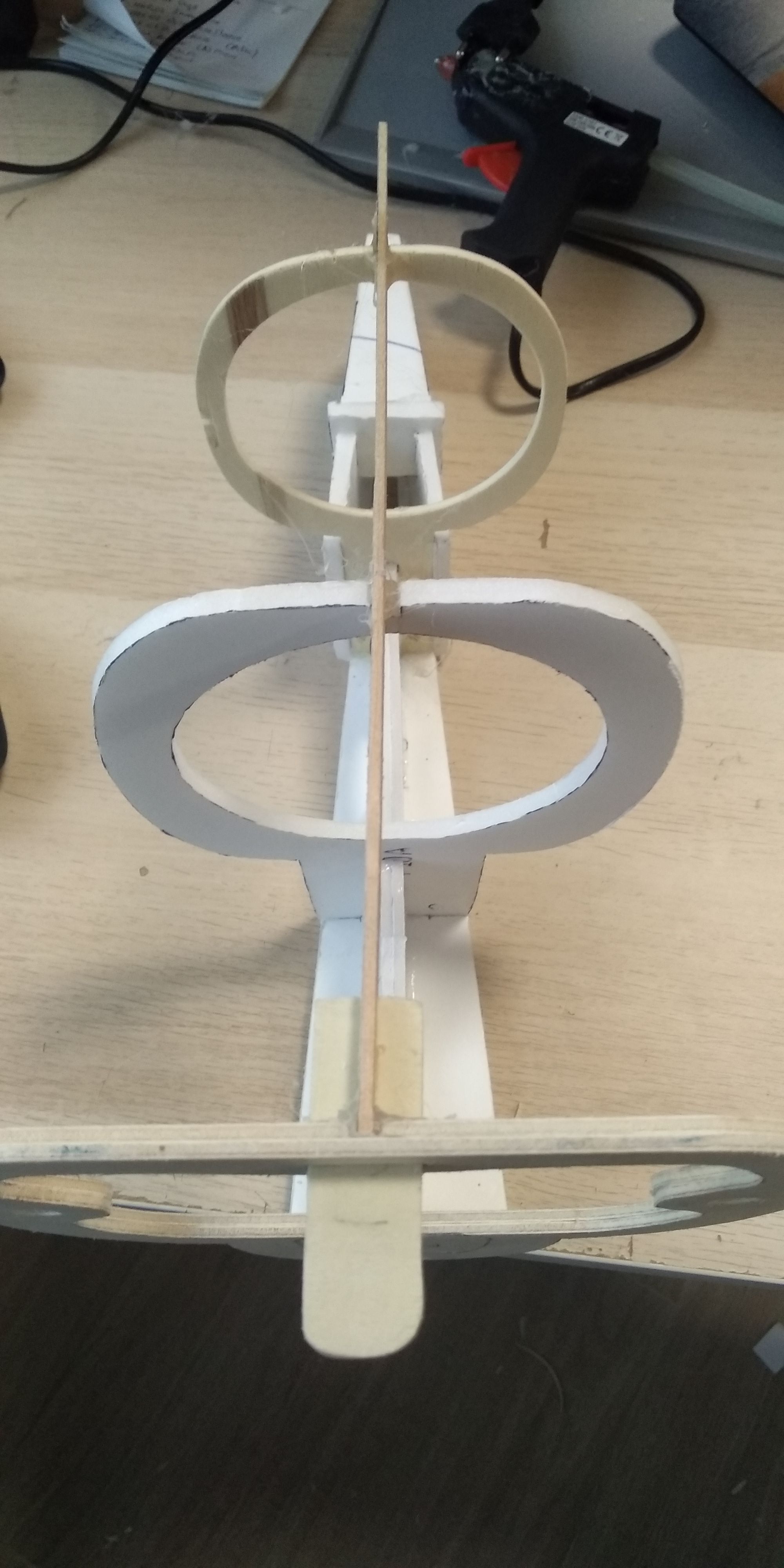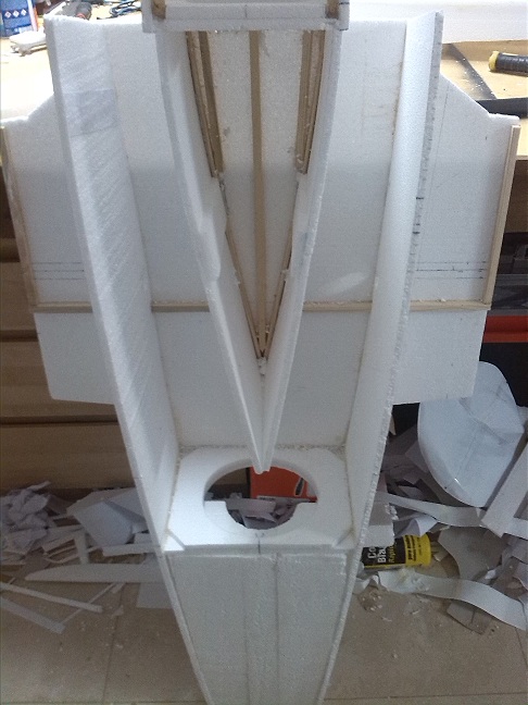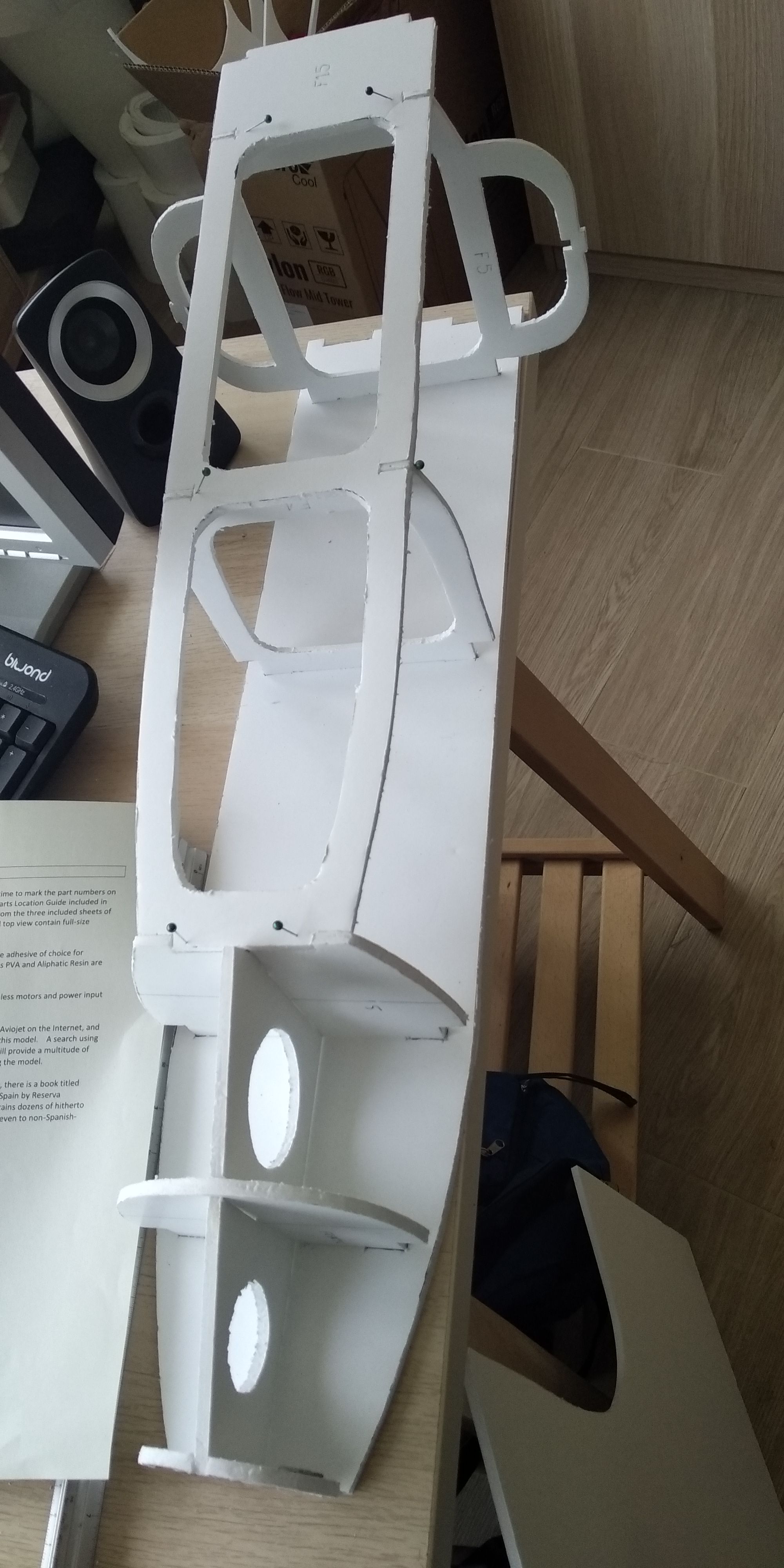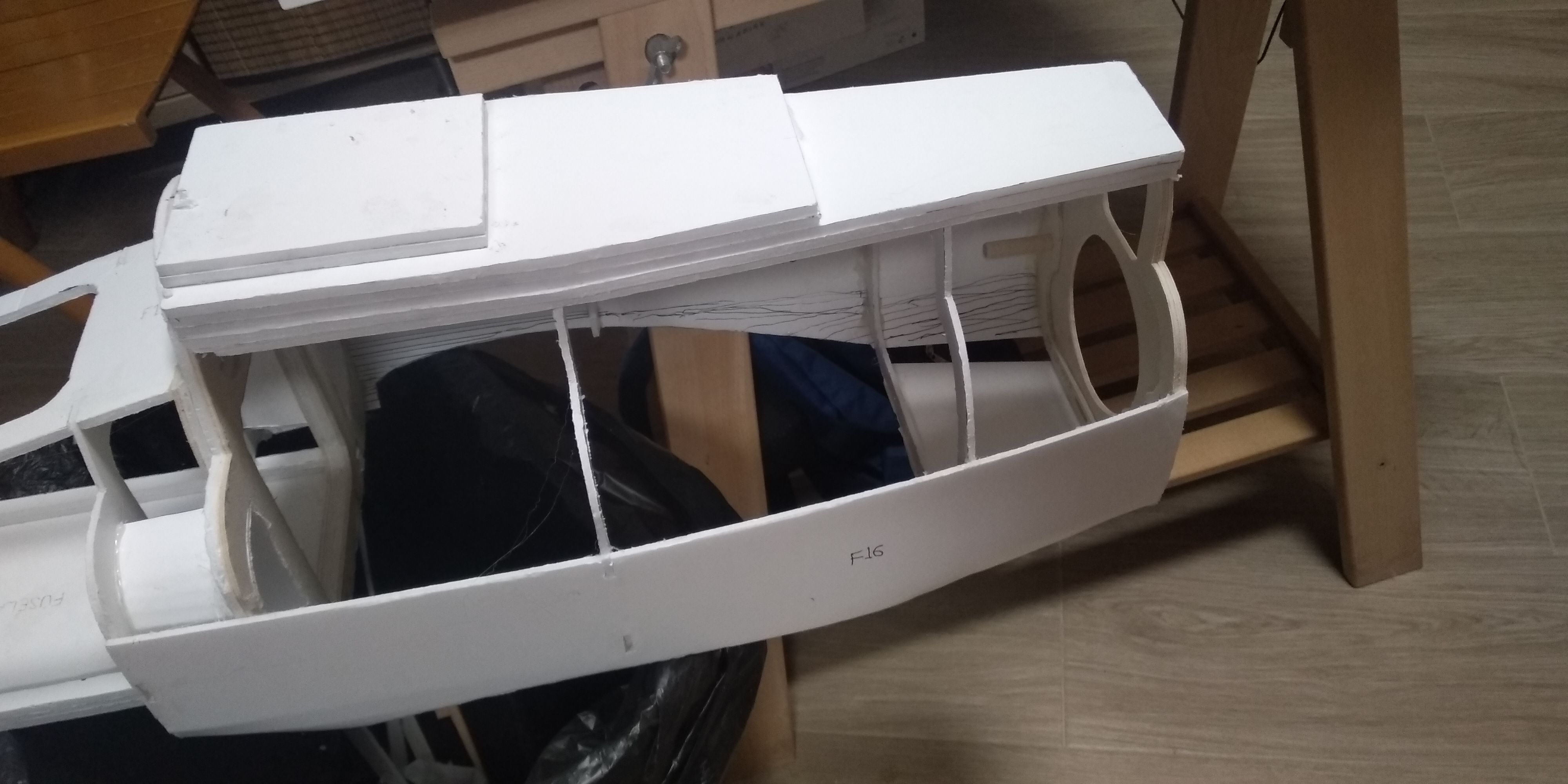 La pieza 7 del fuselaje la tuve que reforzar una vez comencé a forrar la estructura por que cedió, muy débil en cartón pluma de 3 mm.