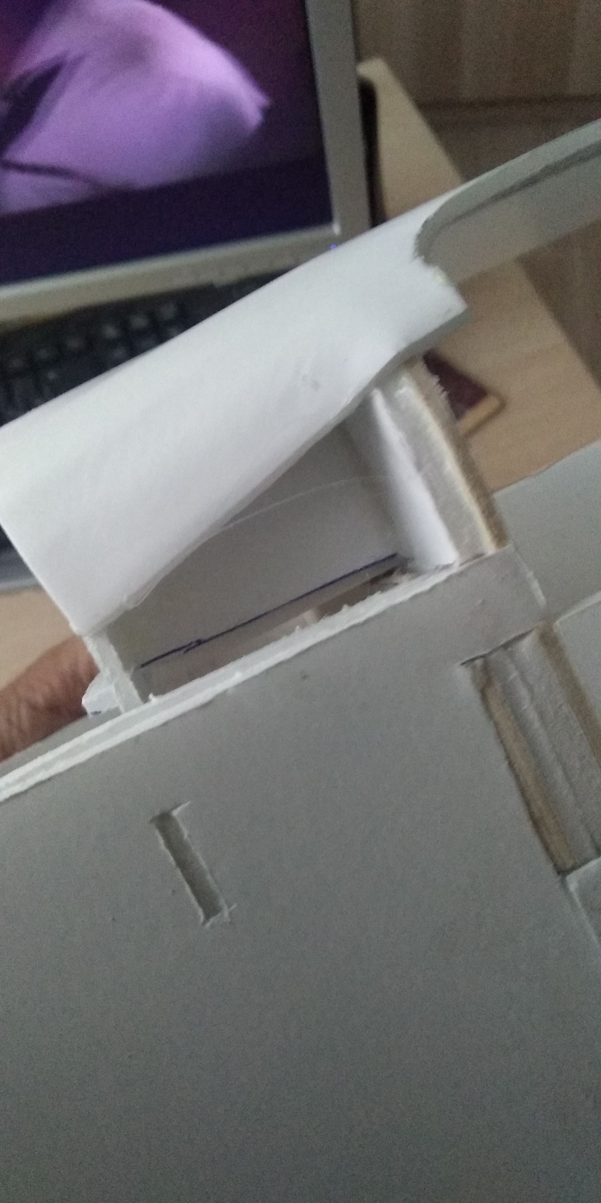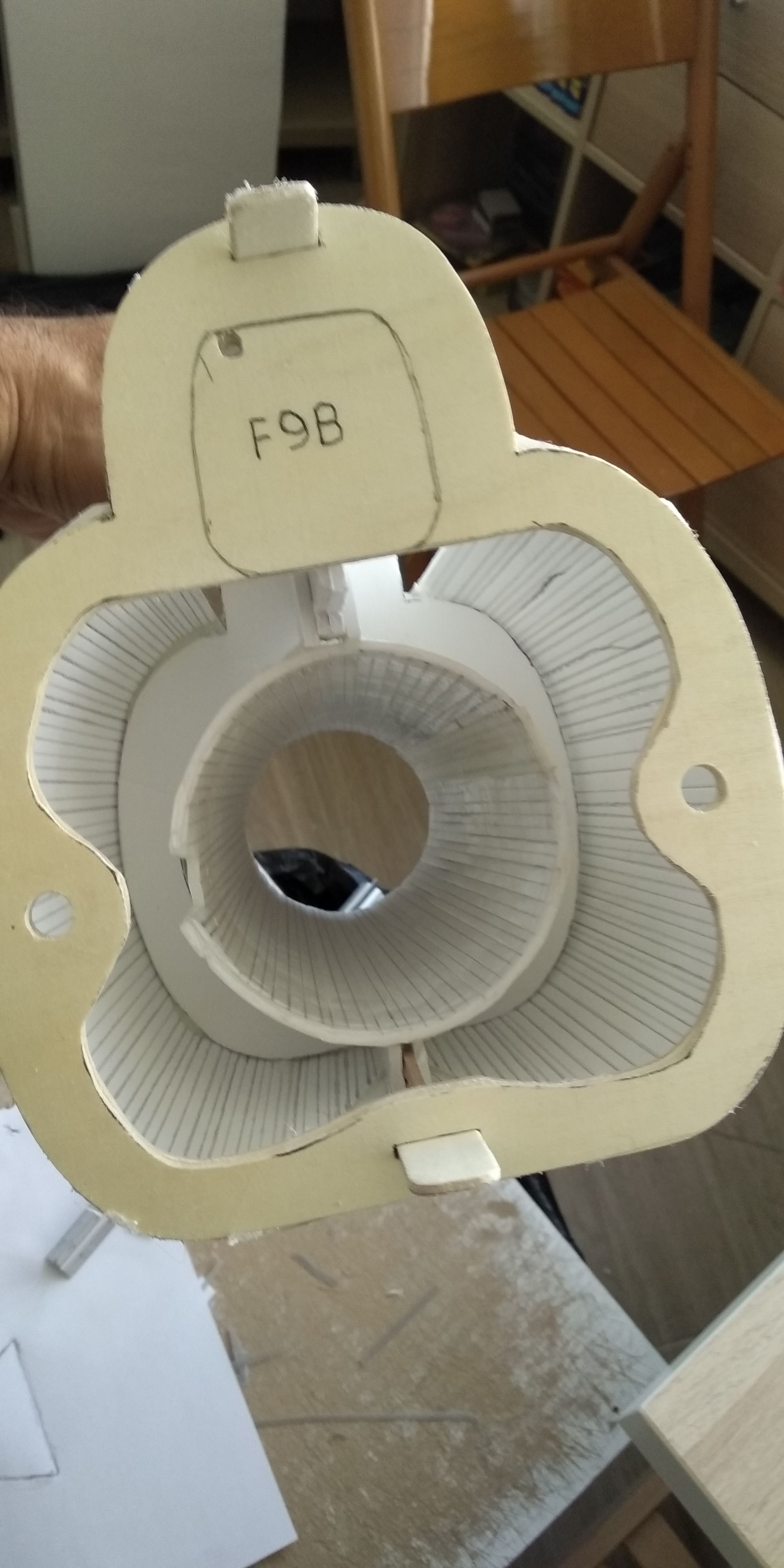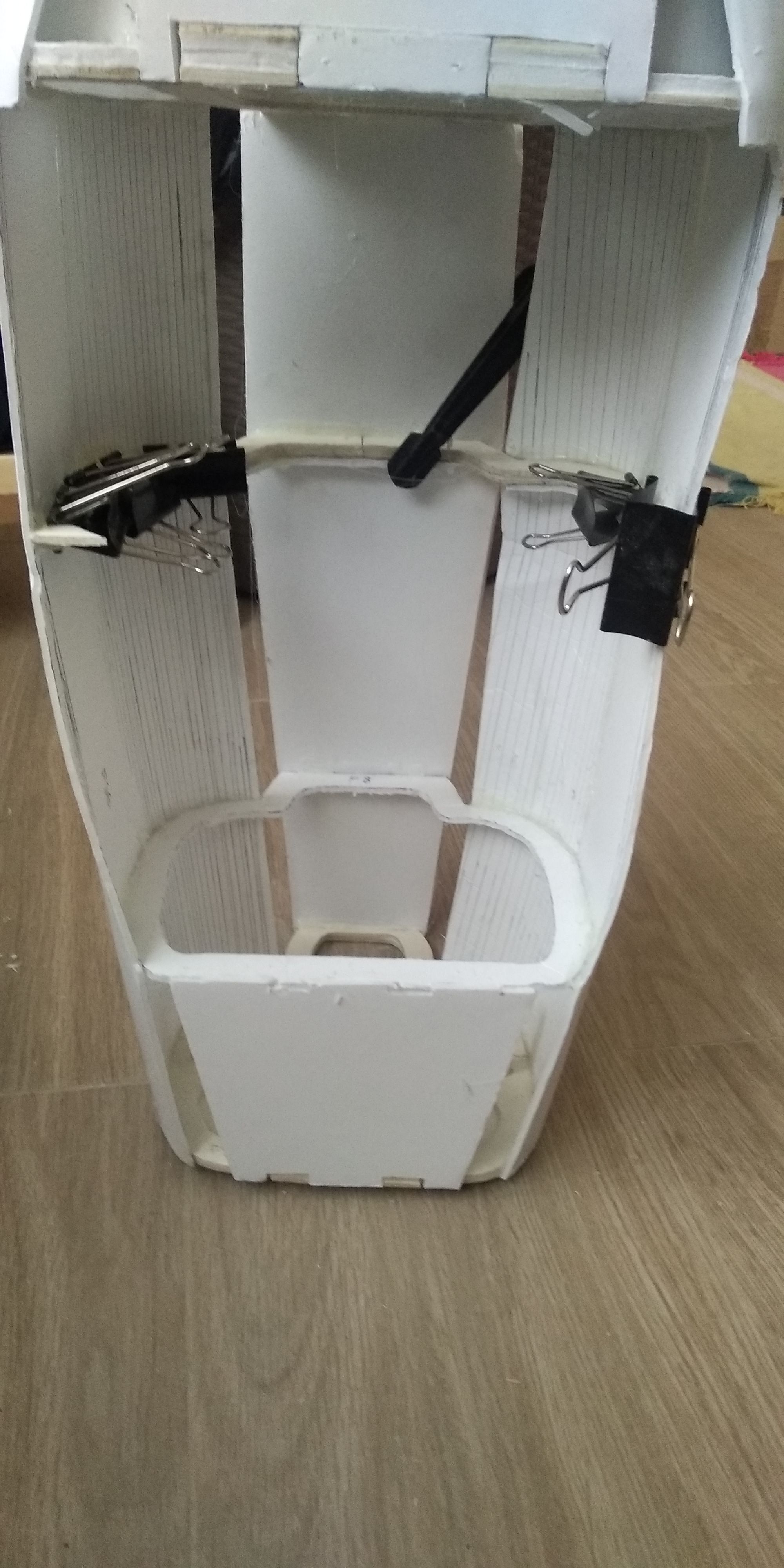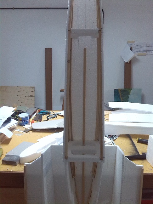 La pieza 7 del fuselaje la tuve que reforzar una vez comencé a forrar la estructura por que cedió, muy débil en cartón pluma de 3 mm.