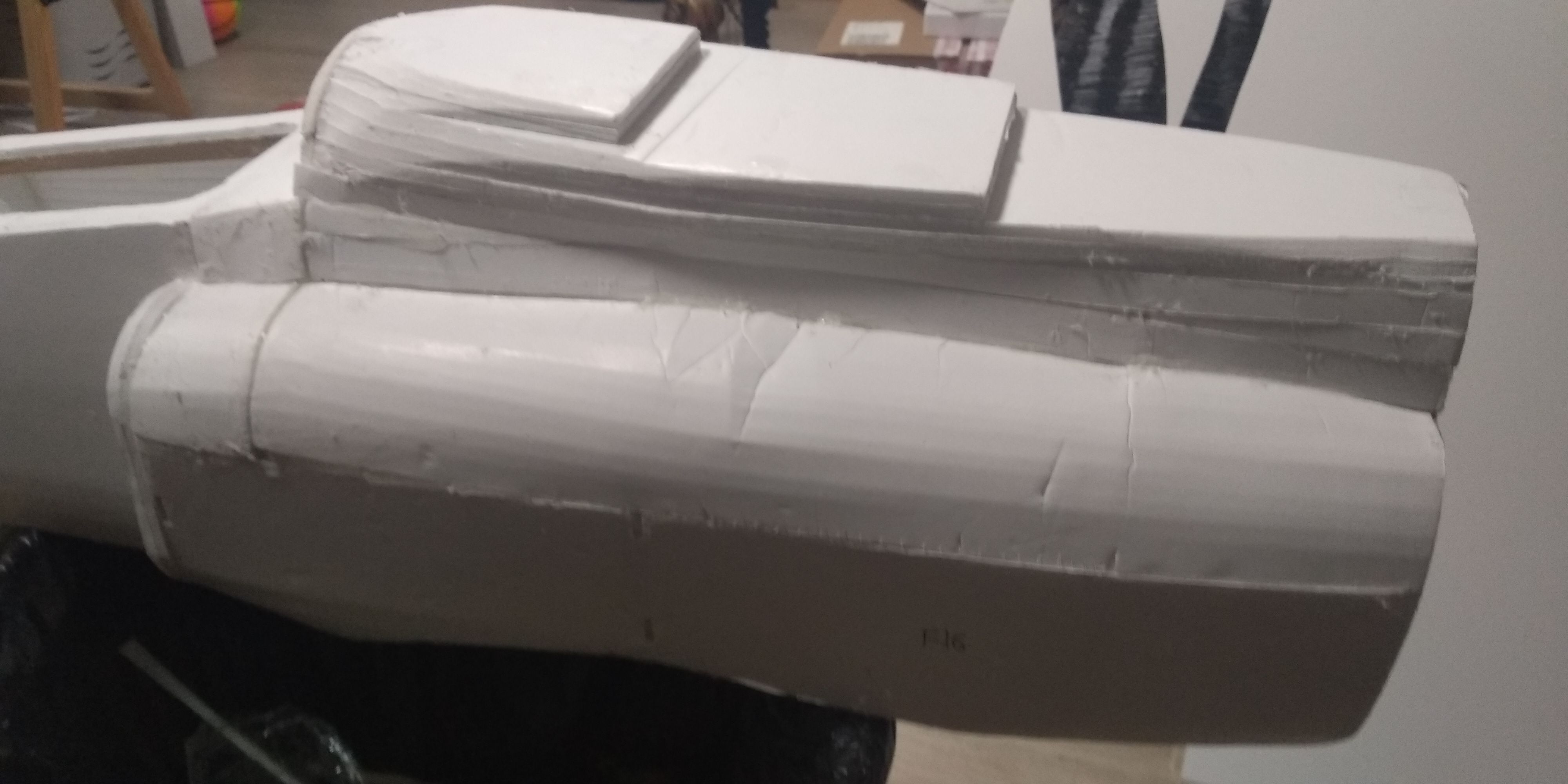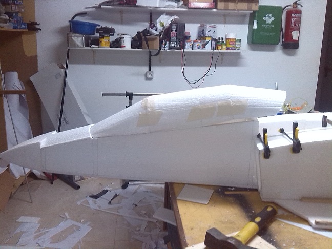 Ya tengo puesto el morro, ahora a lijar pa que se parezca algo al del avion.
