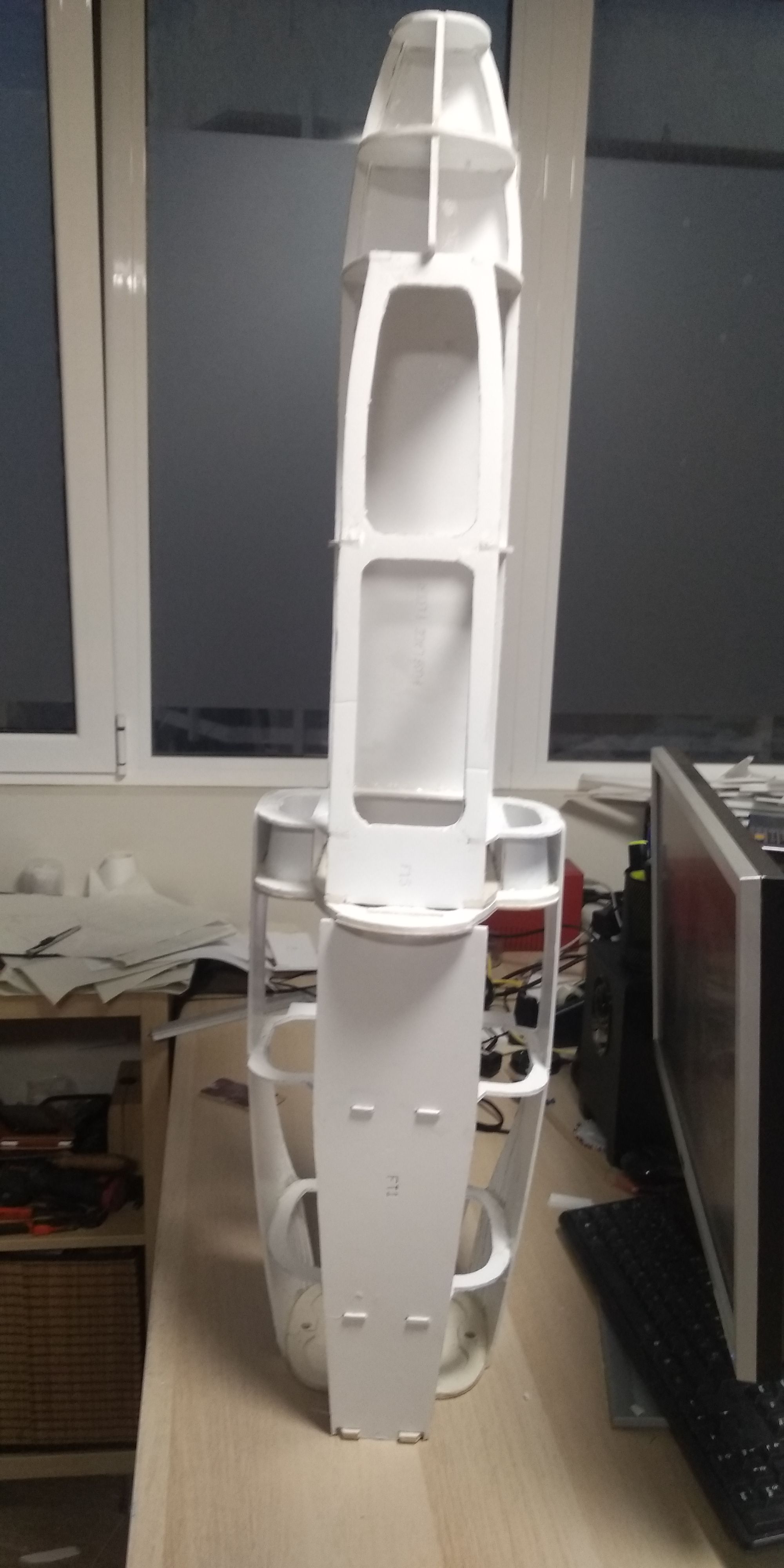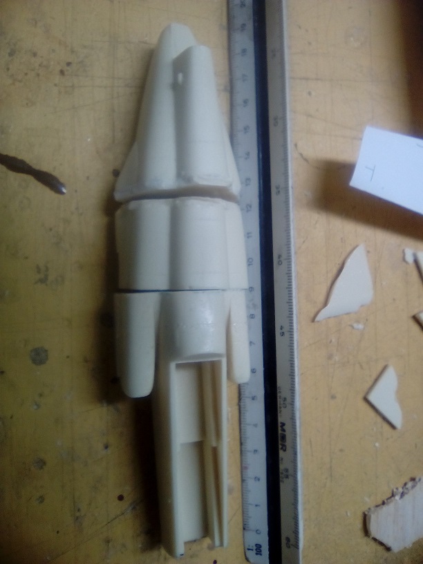 Tras un primer analisis de las piezas de la maqueta , me temo que no va ha servir para mucho, ya que he descubierto que las simetrias del fuselaje no estan muy bien y presenta bastantes defectos, desde el punto de vista de cortar las piezas para sacar las secciones.