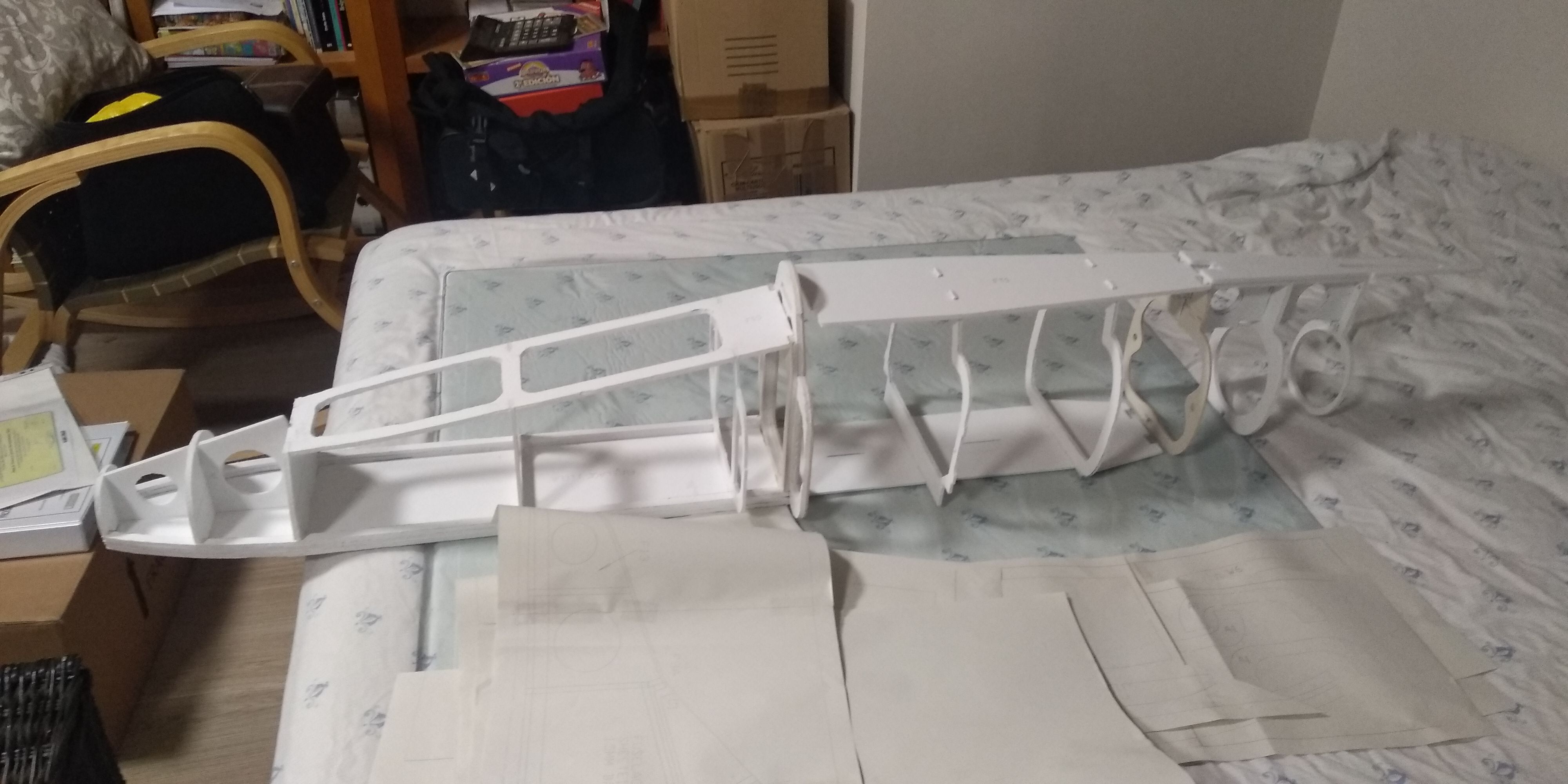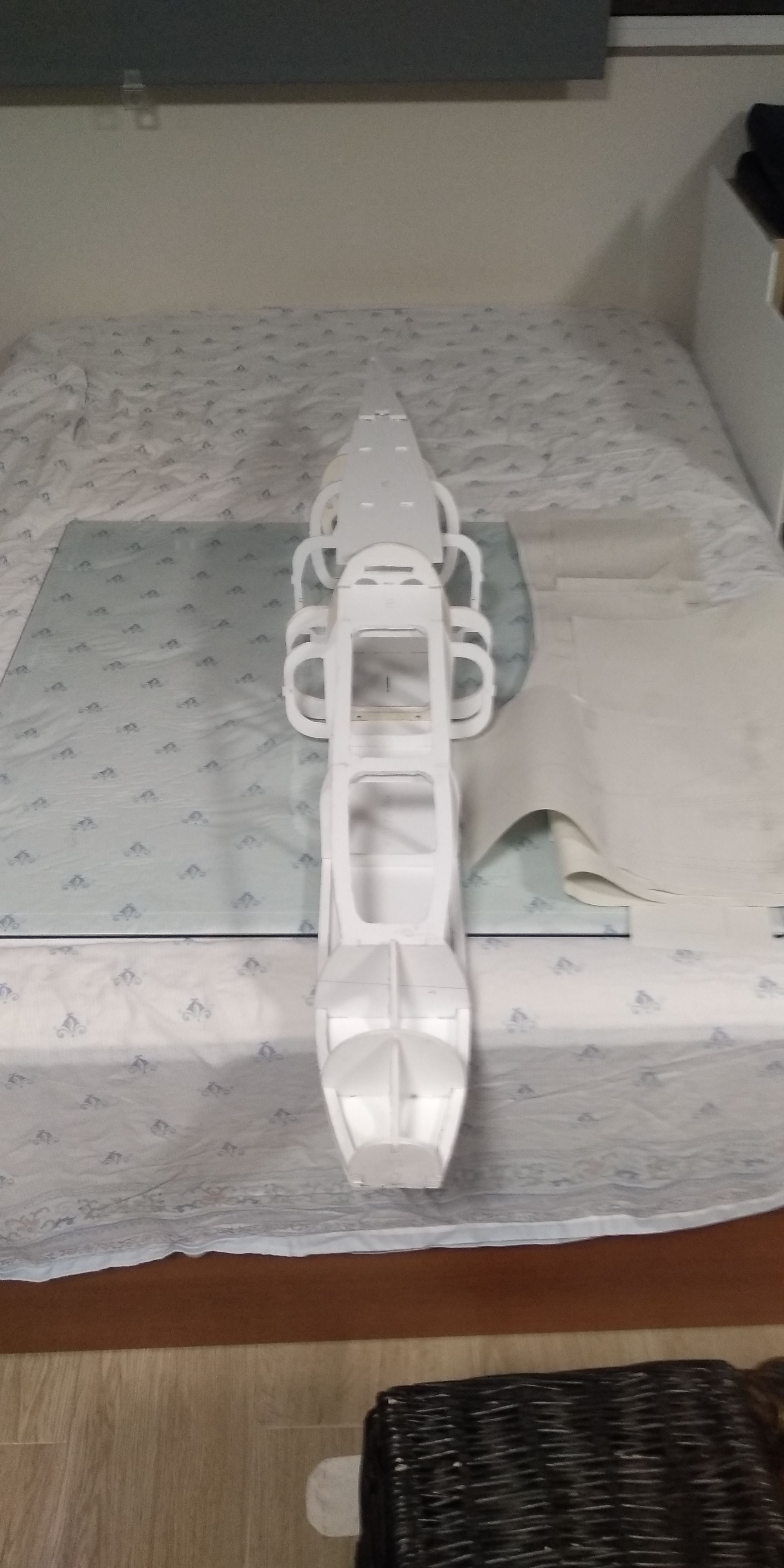 La parte de forrar el cuerpo del avión ya esta tb casi lista, ahora solo falta mucha lija, muchisima lija