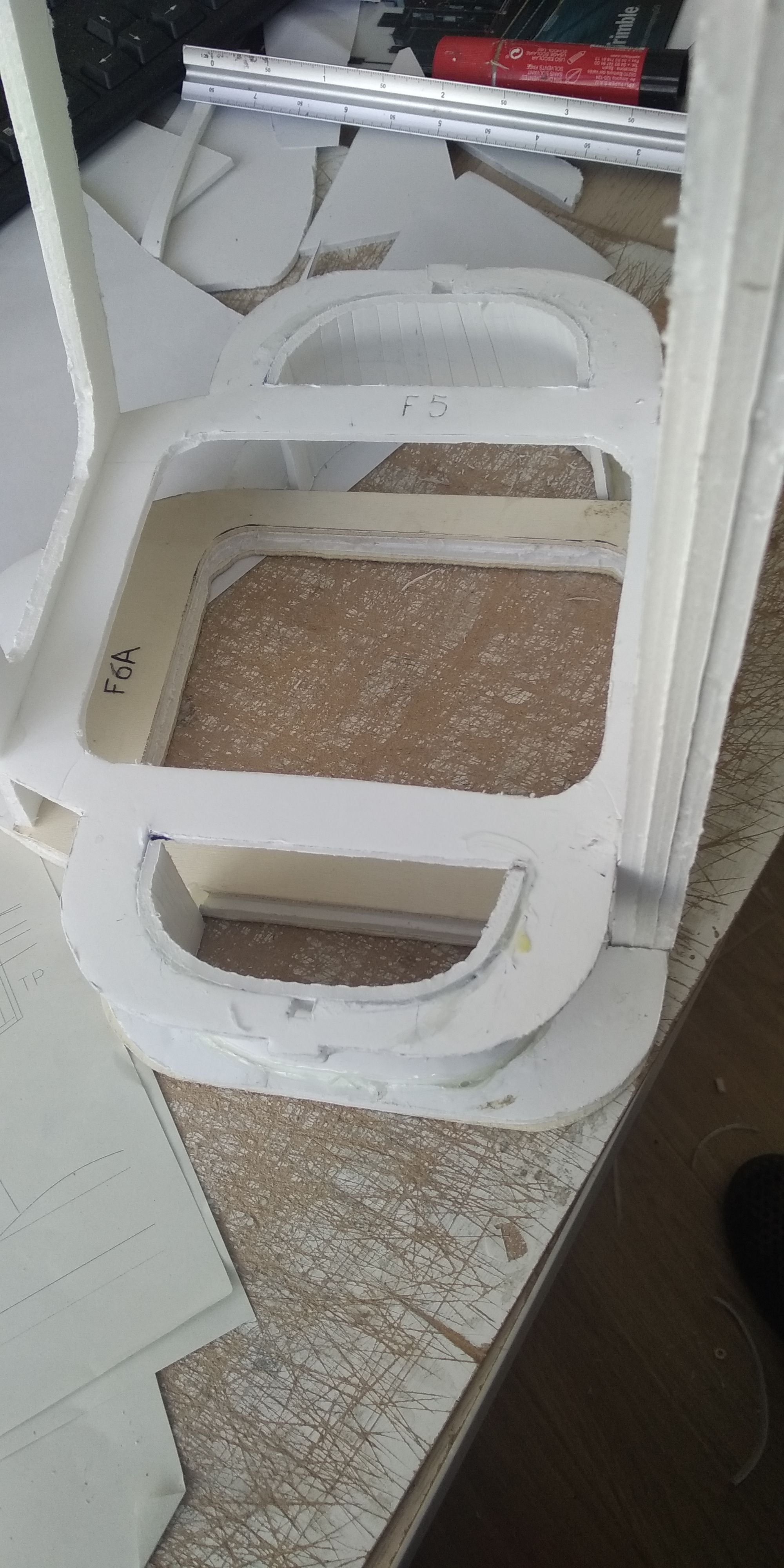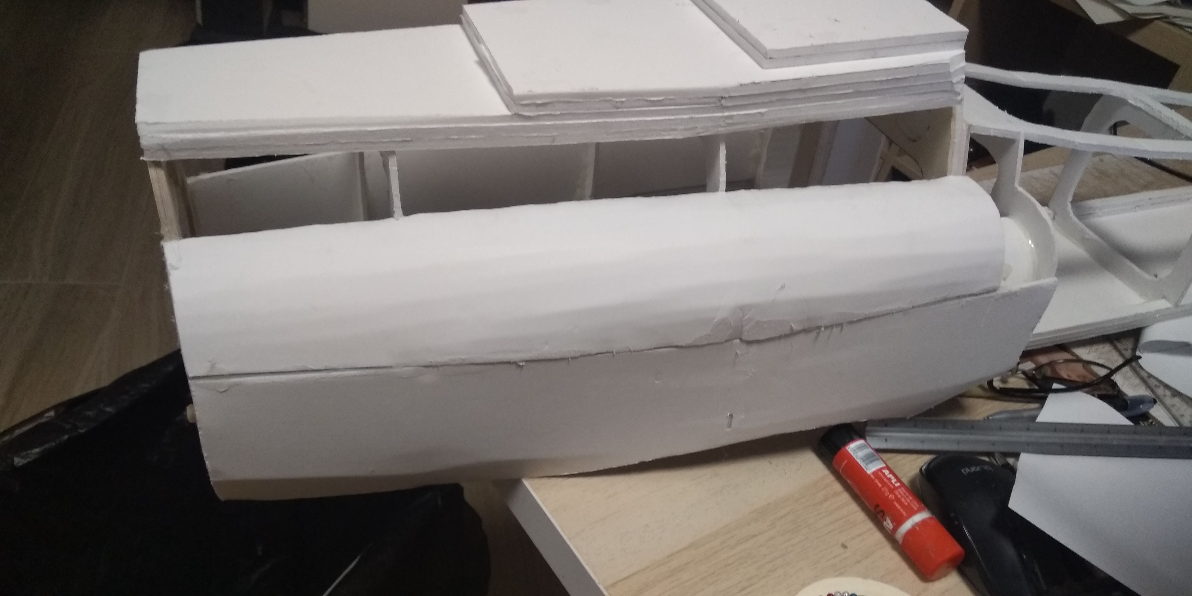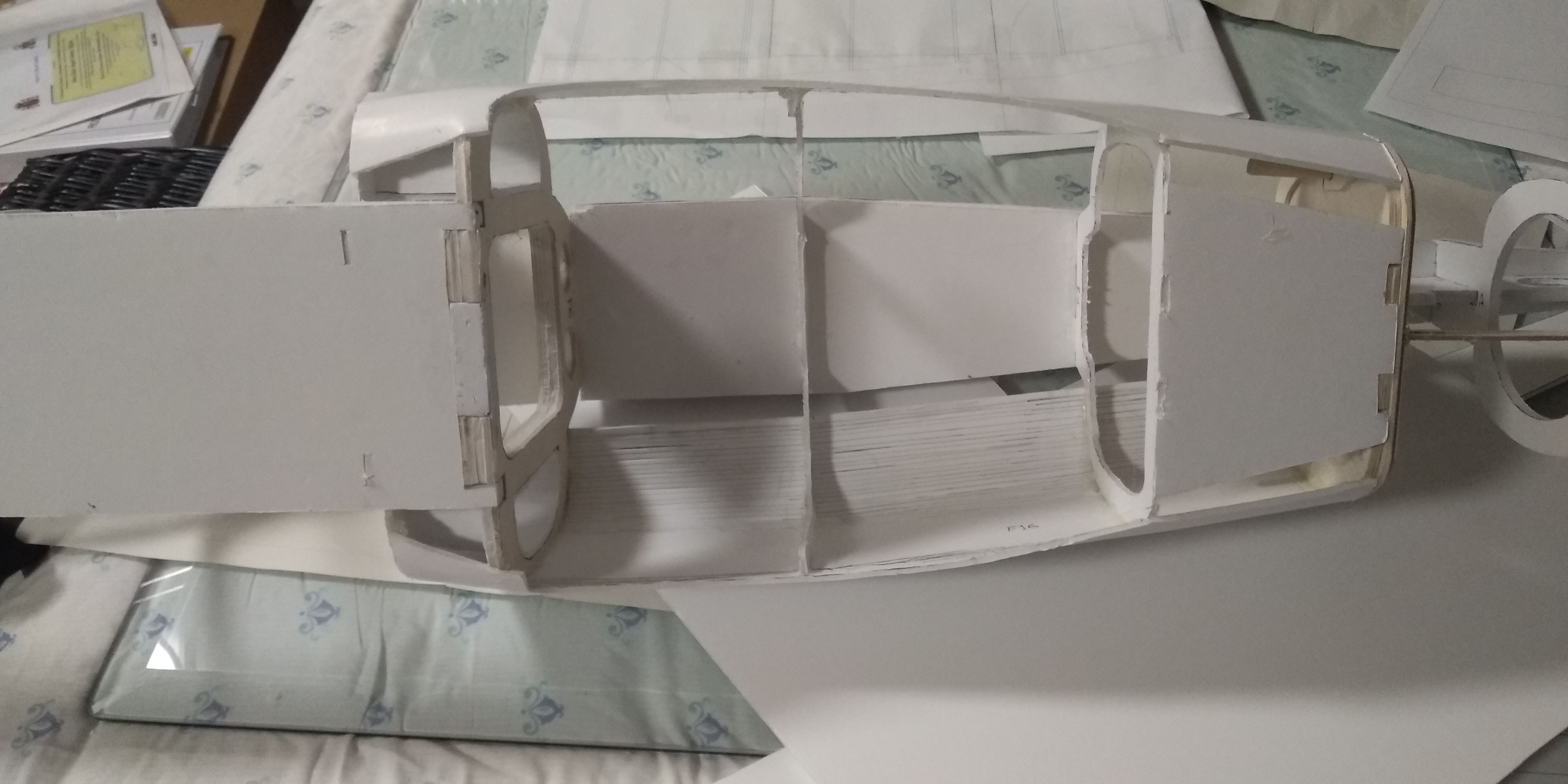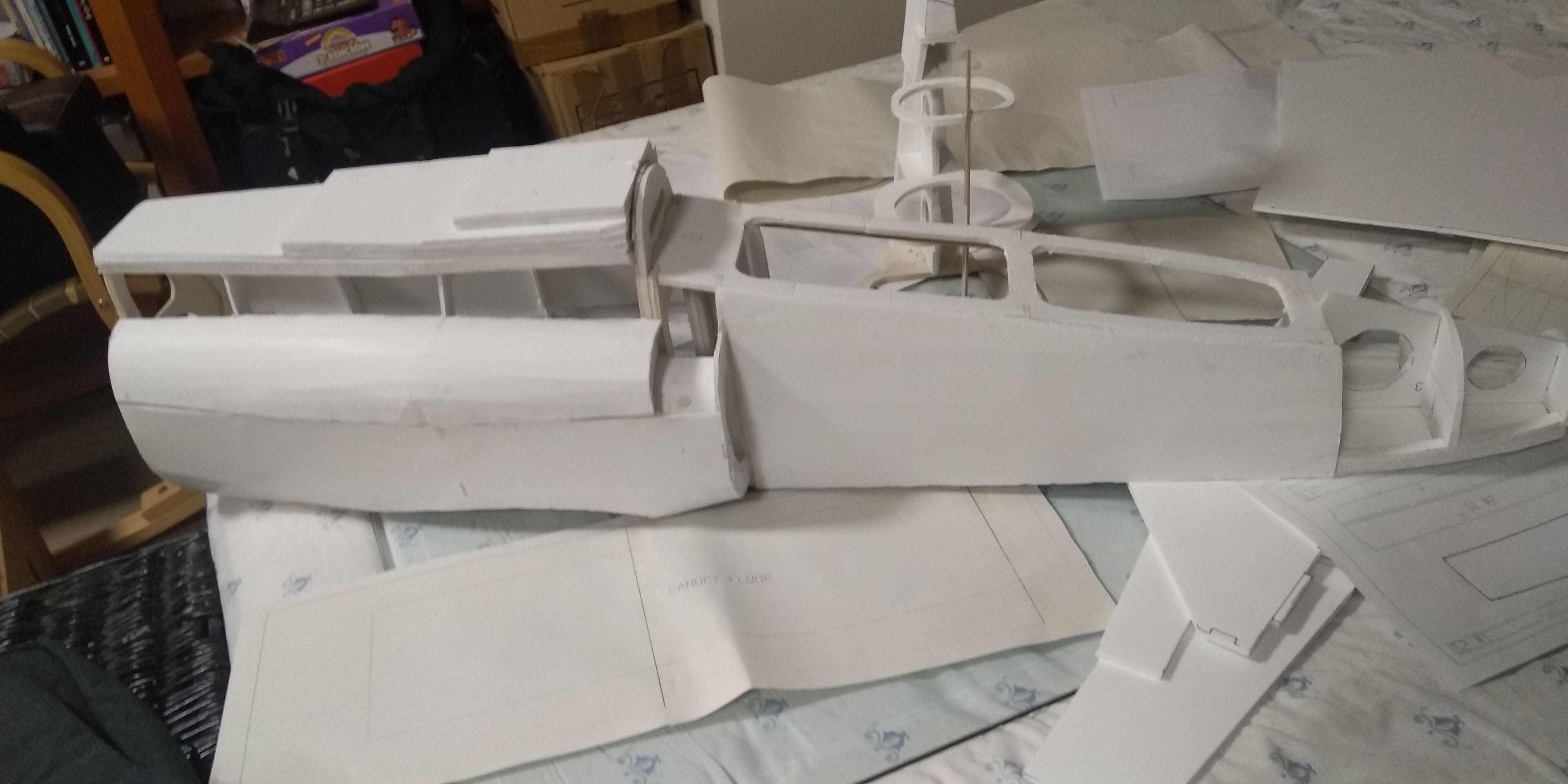 Ya tengo cortada las piezas para la cabina, y las pegue , ahora toca esperar que se sequen.