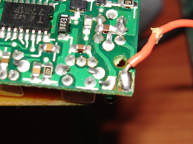 desde aqui (foto) lo puedes desoldar aunque si la idea te parece un poco radical siempre puedes empalmar un trozo en el cable que te queda pelando un poco la punta luego pelas la punta del otro que vayas a unir lo juntas lo sueldas y le pones un trocito de termoretractir para tapar la soldadura, piensa que la gente que vuela veleros de f3f-f3b llevan el cable por dentro del fuselaje y luego le sueldan un trozo mas de cable para que salga por fuera unos 30 cms