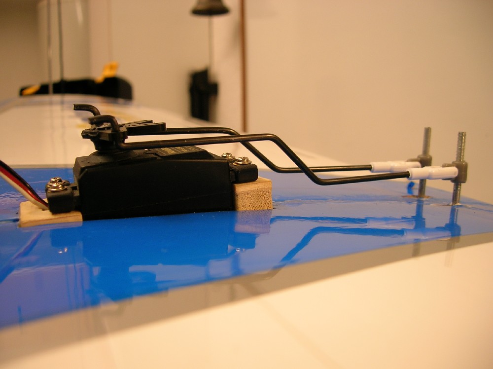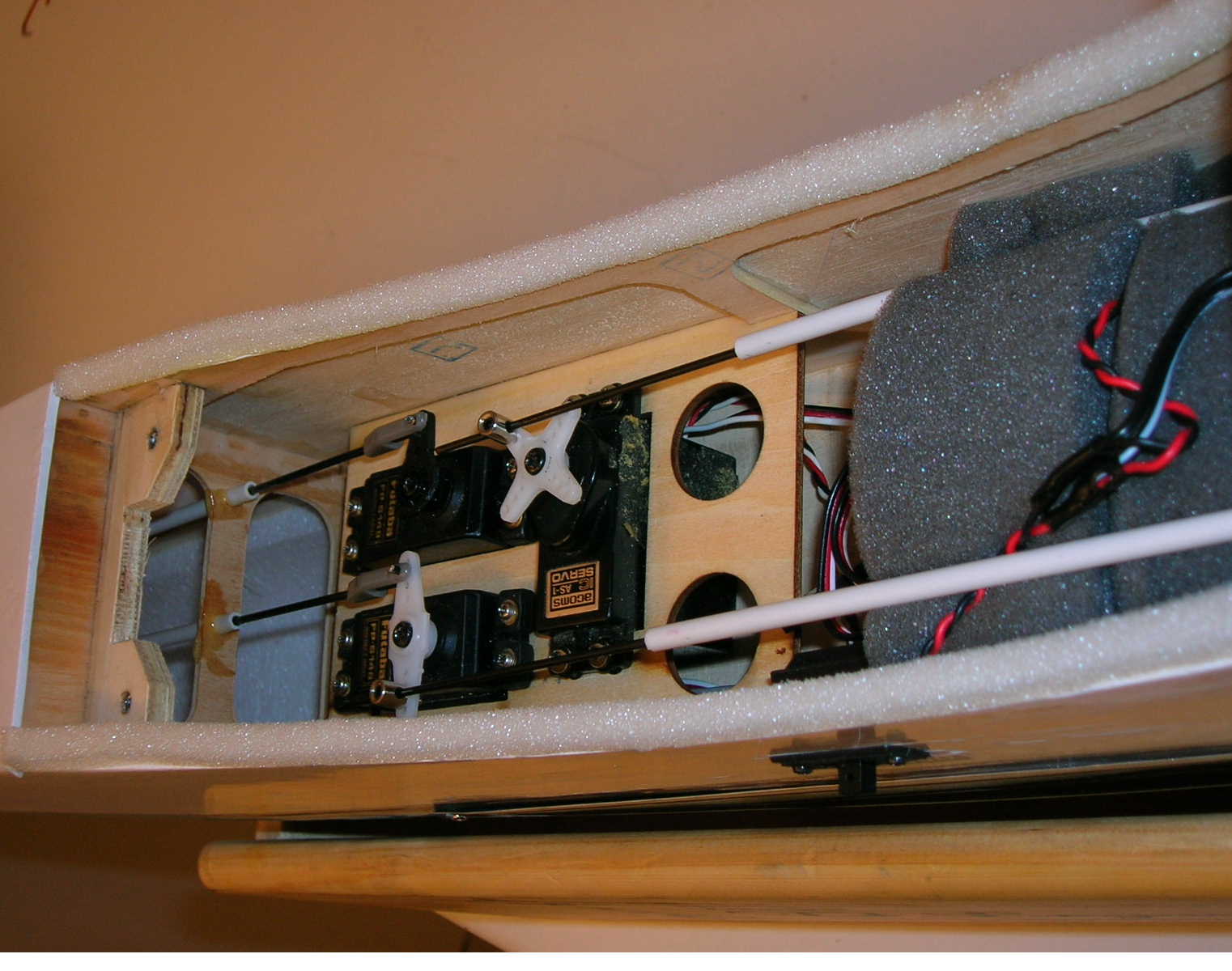 Con los alerones tuve menos suerte. Montado el servo como viene en las instrucciones, el prisionero del servo del gas topa con la varilla del alerón derecho, o sea que he tenido que hacerle un apaño: he empleado una varilla más larga, y la he doblado para "quitarla de enmedio". A ver si esta tarde te puedo enviar una foto desde casa.