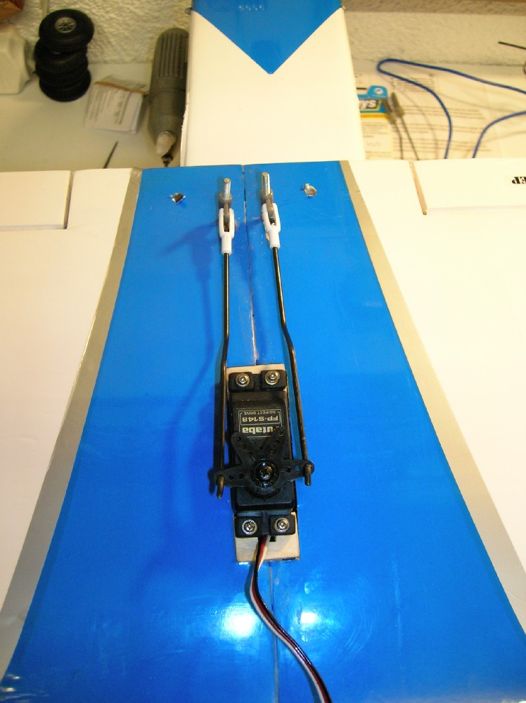 He atornillado más hacia abajo los horns de las varillas de los alerones, con lo que he ganado unos 5mm de "sitio". También gano mando, que no es algo que estuviese buscando, pero bueno... más grados por segundo en los toneles, ¿que no? Habrá que afinar a la hora del aterrizaje