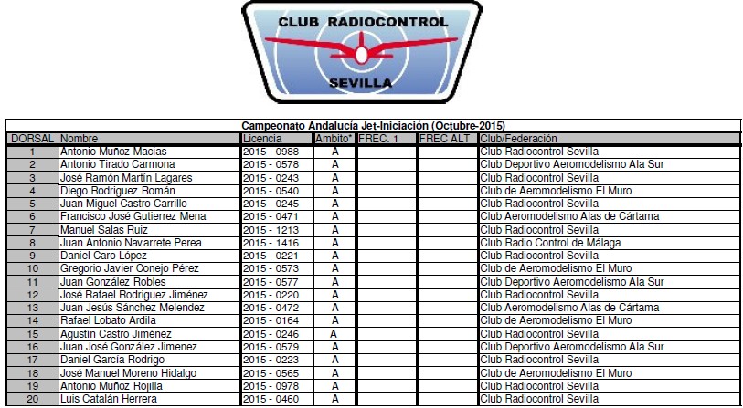 Hola a todos, deciros q este evento es similar al que celebramos el año pasado llamado JET MEETING SEVILLA. La diferencia es q es campeonato de Andalucia, con una tabla muy sencilla de realizar. Digo esto, porque algunos me han dicho q no tienen nivel para un campeonato asi, y el nivel que tenemos todos en turbinas, con algunas excepciones, es similar. Asi que no sentiros intimidados por el nombre del evento.