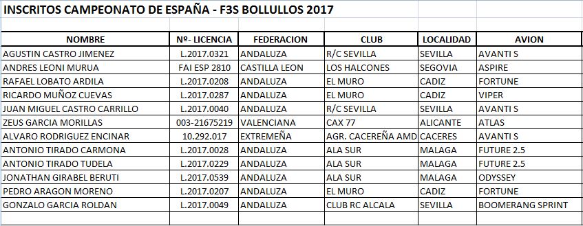 Ya fue anunciado el Campeonato de España de la especialidad en la Fórmula Nacional con el "Programa Acrobático Avanzado 2017" acordado. Este Campeonato de España se realiza en paralelo y conjuntamente con el Campeonato de Andalucía de la especialidad organizado por la Federación Andaluza de los Deportes Aéreos (FEADA) a través de su Comisión Técnica de Aeromodelismo (CTAMD) y con la colaboración del Club Radiocontrol Sevilla que aporta las instalaciones y el personal de organización. La Federación Nacional de Deportes Aéreos (RFAE) a través de su comisión Técnica Nacional de Aeromodelismo (CTNA) delegó en el Club RC Sevilla la organización de éste Campeonato de España.