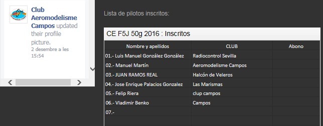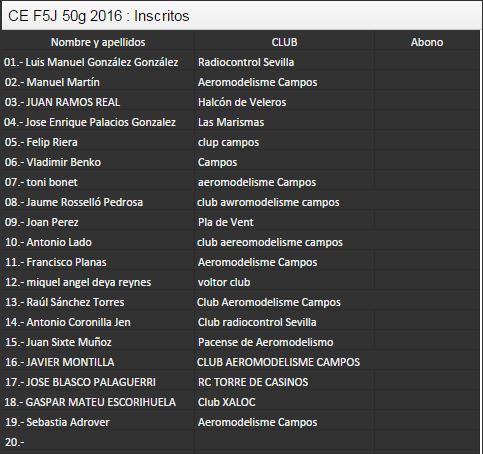 Mas modelos en el álbum de fotos publicado por el Club Aeromodelisme Campos en su web (http://www.clubaeromodelismecampos.com/) y en https://f5j.es/... Y esperemos que algún concursante nos aporte mas datos sobre su/s modelo/s.
