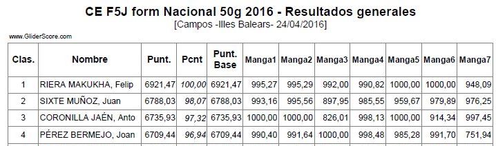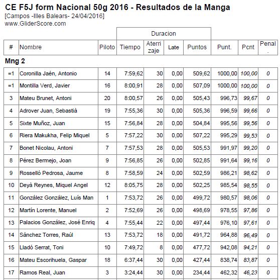 Y ya que estamos con los datos, magnífica labor la de Joan Fontcuberta a los mandos de la informática, no sólo por la rapidez en cuanto al procesamiento de la información sino por su 'adaptación' de la hoja de anotaciones de 'GliderScore' para hacerla mucho mas intuitiva, fácil de rellenar y evitando dudas y/o errores.