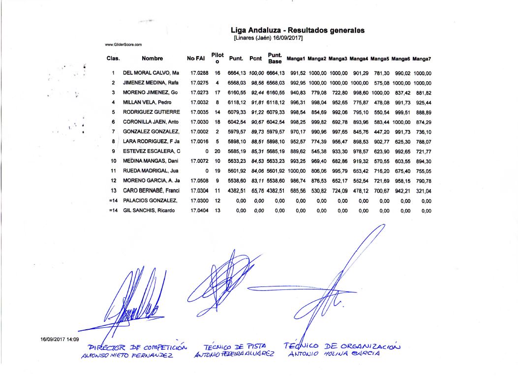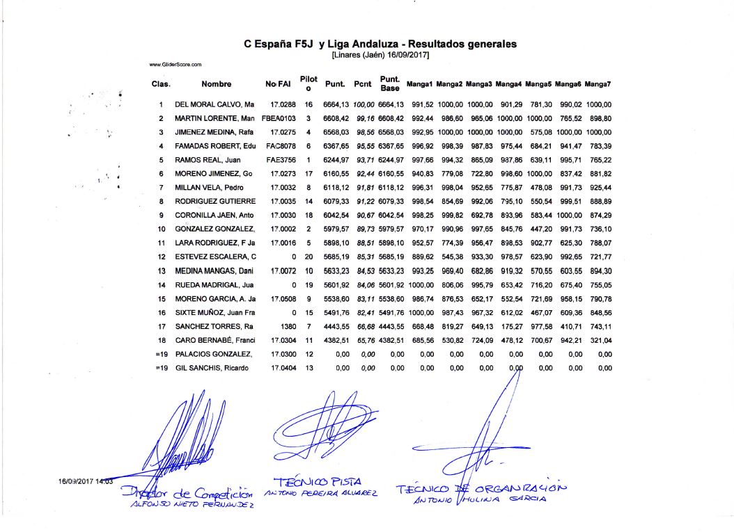 sponsor de este evento y que además de patrocinar ‘su’ equipo (M. Martin y L. Gzlez) regaló entre los participantes una excelente GliderCG (de fabricación nacional –Marco A. Moreno)... el agraciado sería Eduard Famadas (aunque por un ligero fallo de la organización se nombrara en primer lugar a Gonzalo, que caballerosa y deportivamente no tuvo ningún inconveniente en devolver el regalo; se confundió el número de dorsal con el de la clasificación)