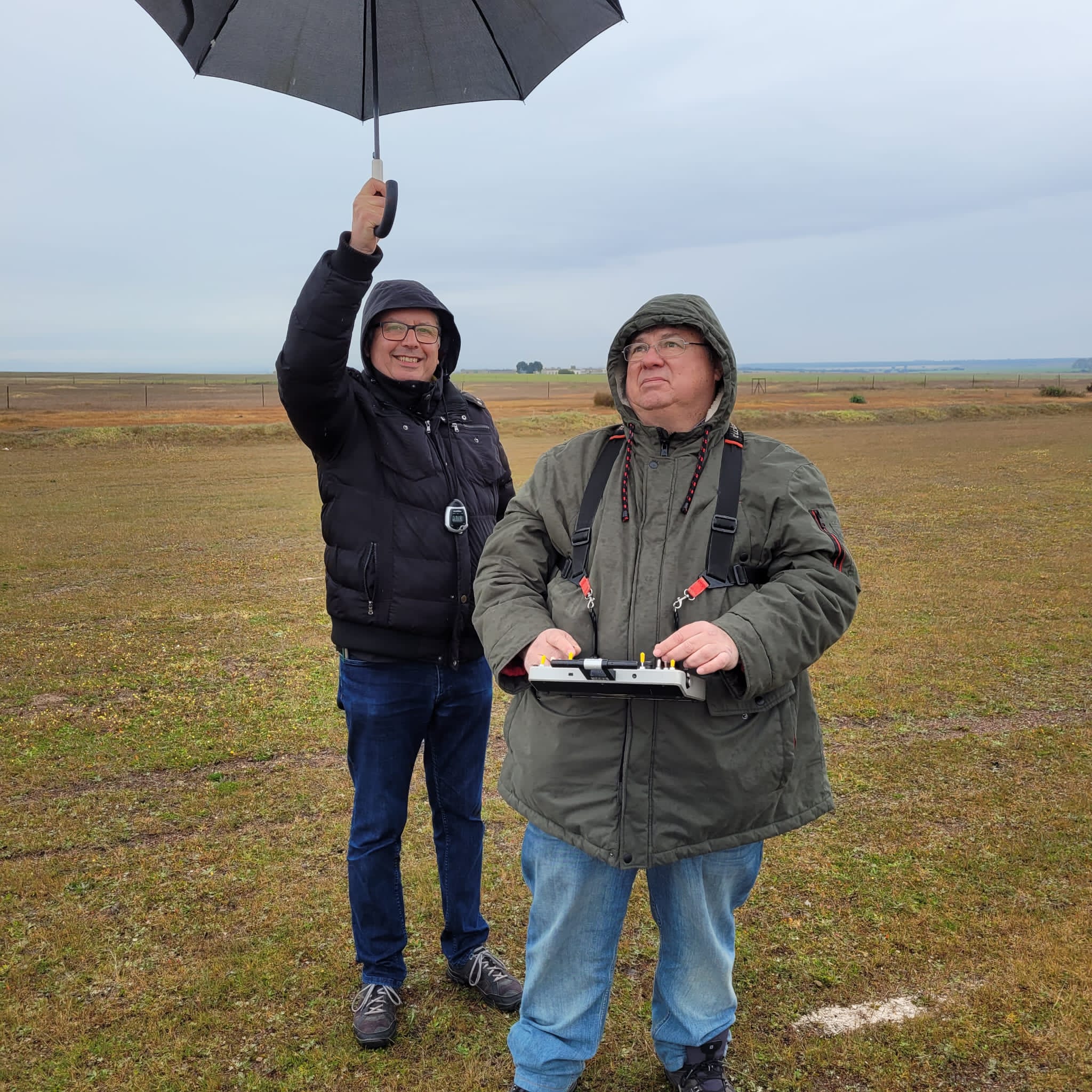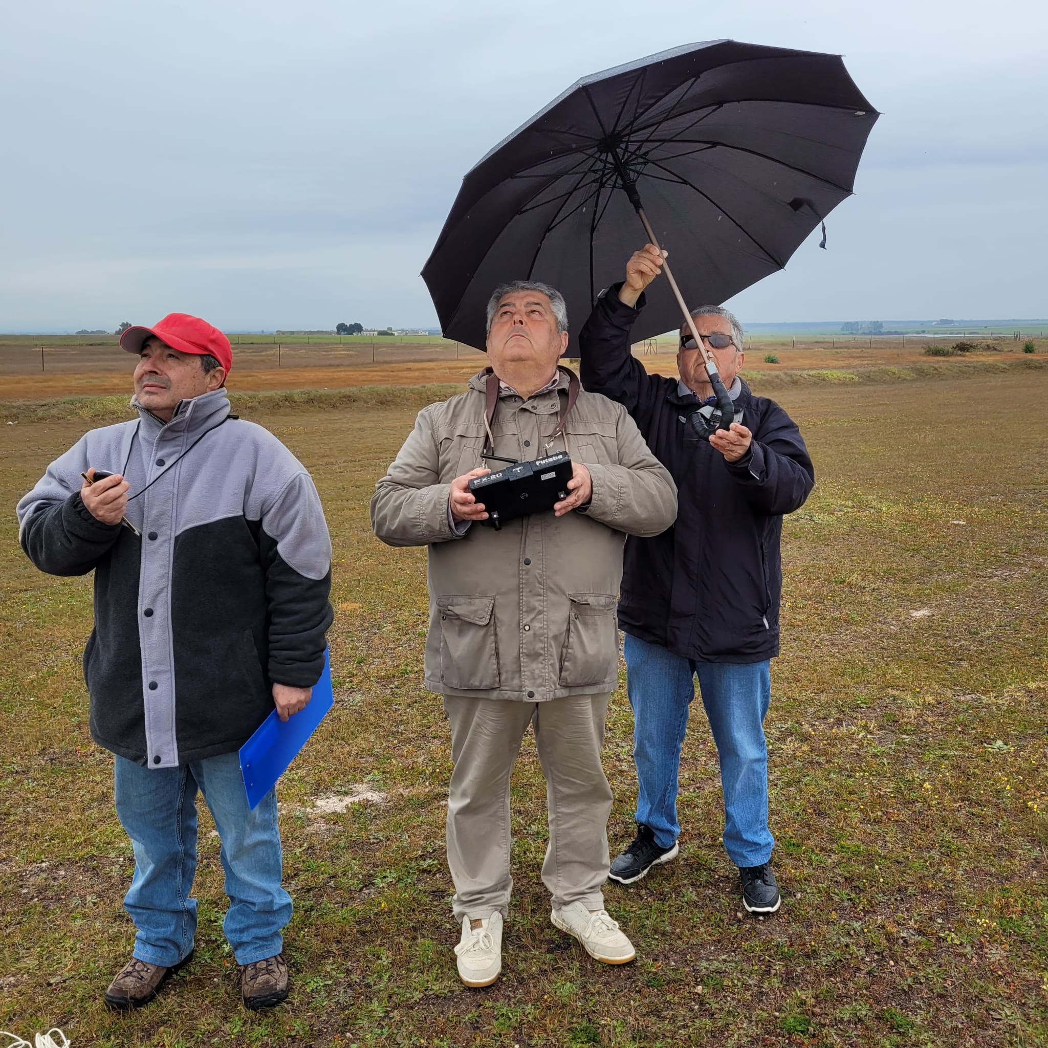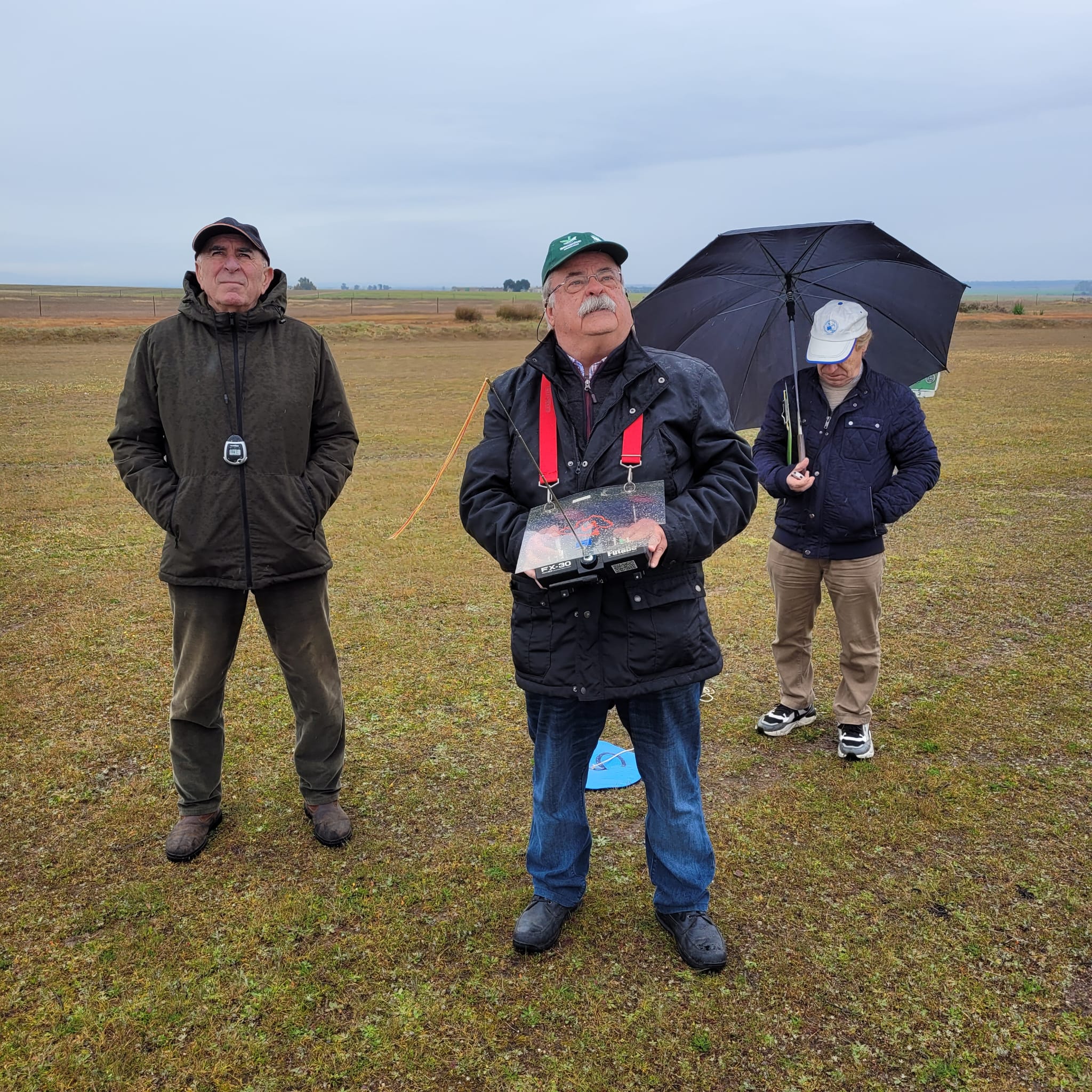Nos presentamos los once inscritos, los organizadores tenían previsto el comienzo de los vuelos para las 11, pero visto el panorama el sábado se aconsejó llegar lo antes posible para empezar mas temprano por lo que Juan Fco Sixte ya había dicho que fueramos montando los aviones pero la lluvia no nos dejó empezar hasta bien pasadas las 11, con mas miedo que vergüenza porque dejó de llover y se puso en marcha la secretaria; entre lluvias y claros con rachas de aire a veces molestas fueron transcurriendo los vuelos y entre los cronometradores y ayudantes se fué salvando el momento